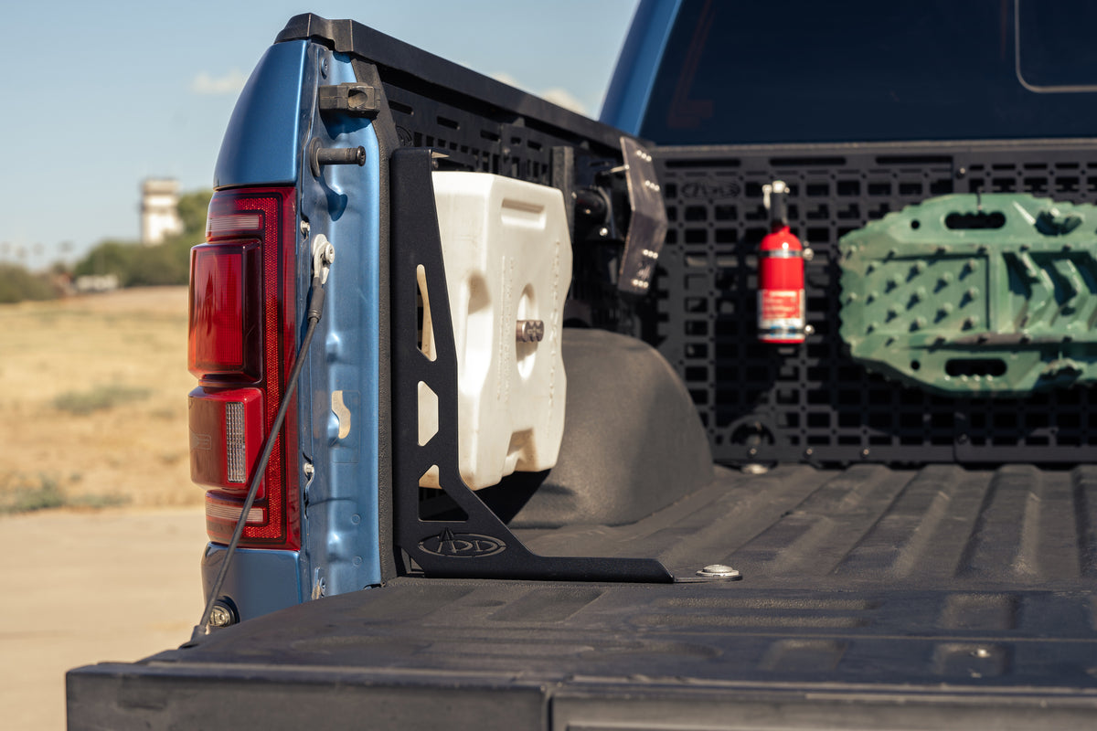 Constructed from steel and finished in a durable 2-stage hammer black powder coat, these storage panels add secure storage for essentials like shovels, hi-lift jacks, fluid tanks, recovery gear, and more. The durable coating protects against rust and weather, ensuring the panels withstand even the most challenging tasks. Rigid when mounted yet easily removable, the panels let you adapt your storage as needed. Our panels were carefully designed to perfectly fit the contours of your Ford truck bed while maximizing available square footage for storage. As always, these are fully bolt-on and Made in America.