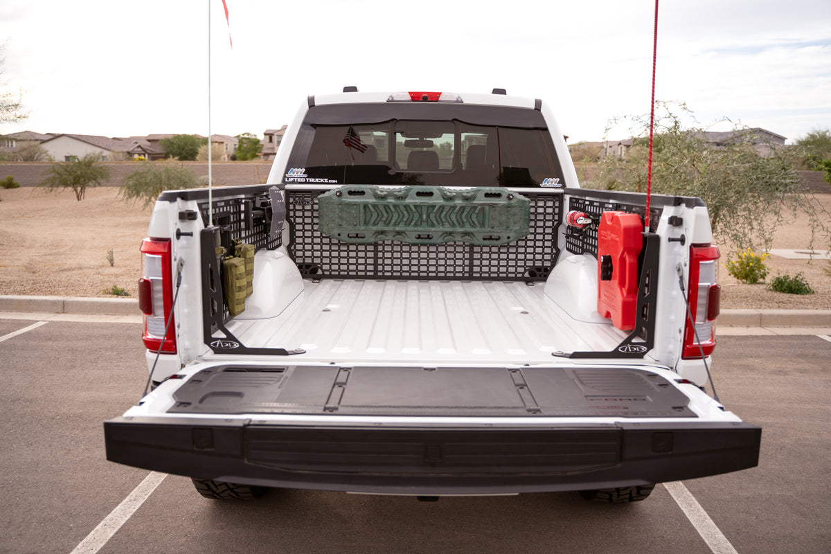 Manufactured from steel, these panels maximize cargo storage by utilizing vertical storage space to keep the truck bed free for larger loads. The panels are ideal for storing gear such as shovels, hi-lift jacks, fluid tanks, recovery gear, and more. Our panels are finished with a hammer black powder coat, bringing a sleek style and providing resistance to the elements. Multiple mounting points ensure the panels are rigid and secure, yet are easily removable if needed. As always, these are Made in America.