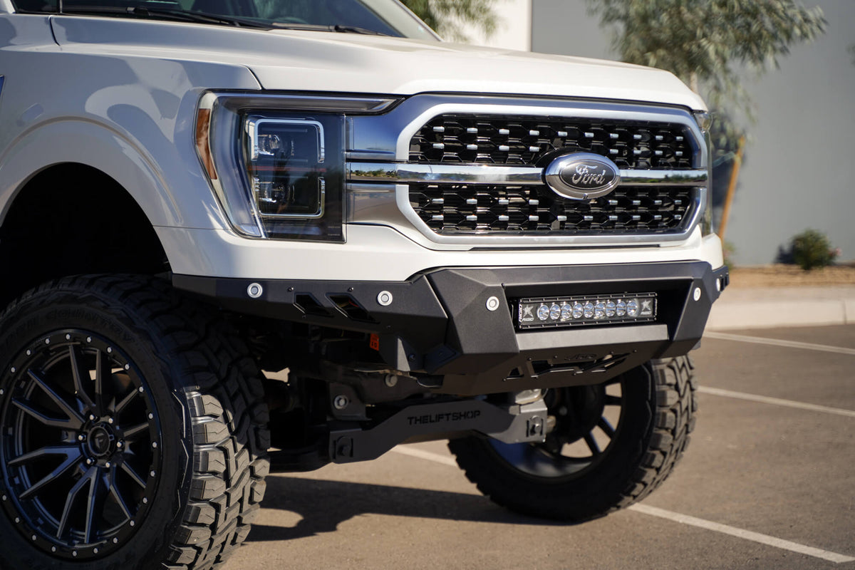 The F-150 Black Label Front Bumper is finished in a hammer black powder coat, while the accent panels are finished in satin black. As always, this is fully bolt-on and Made in America.