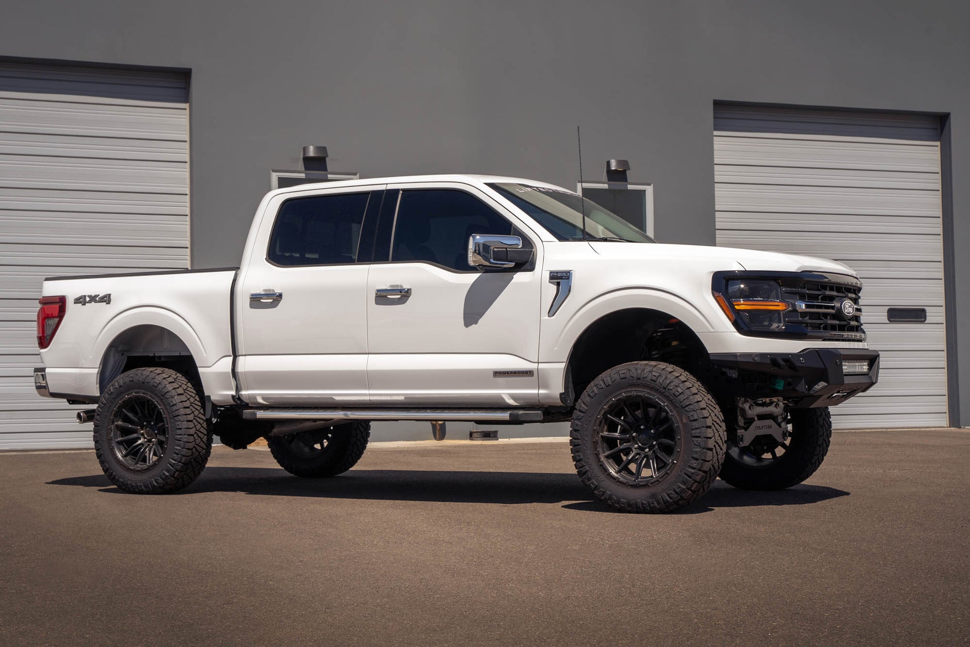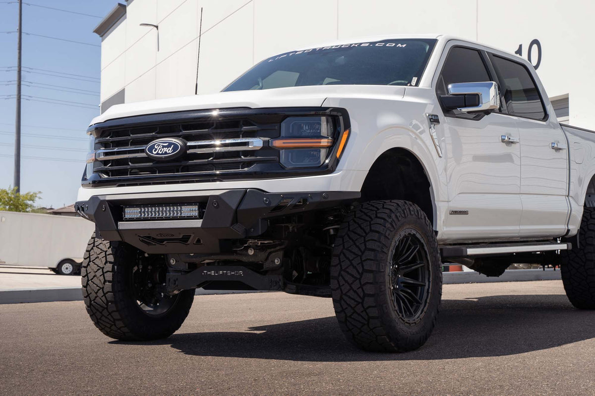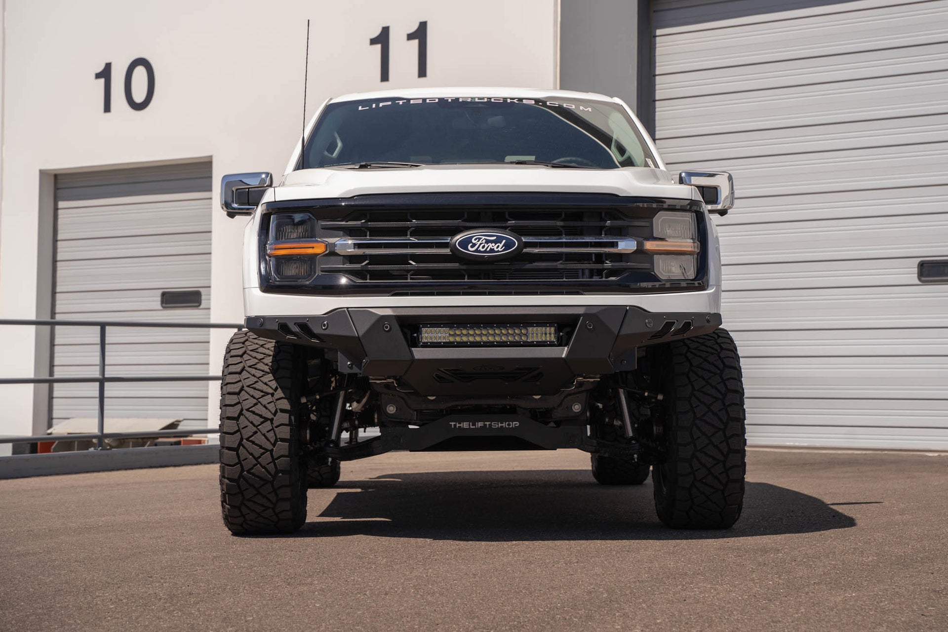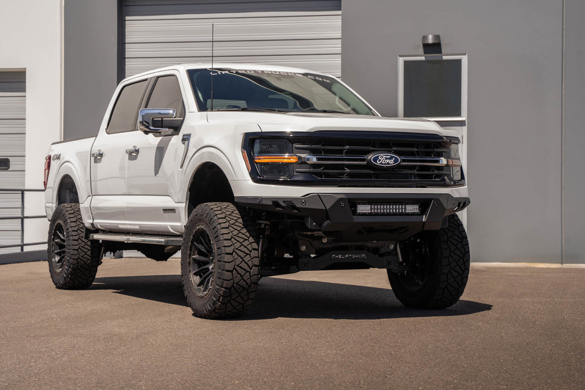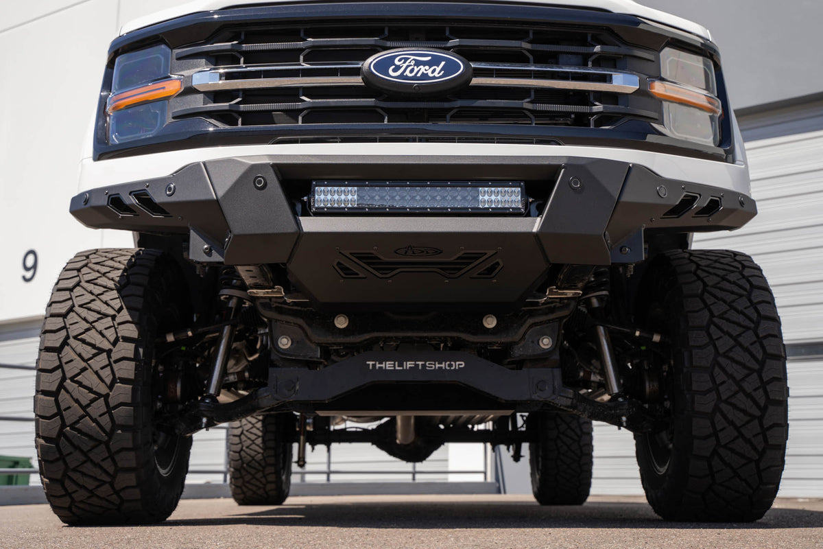 Our Black Label Ford F-150 Front Bumper enhances your truck’s exterior styling with its aggressive design while providing lighting provisions for improving visibility. The slim wings and dual-stage hammer black powder coat finish contribute to the bumper’s overall sleek look. For supplemental lighting, you can mount one 20-inch LED light bar in the integrated center mount.