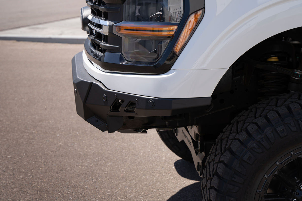 The Black Label Front Bumper tightly follows your truck’s factory bodylines for a trim fitment, and with its satin black powder coated accent panels and detailed cutouts, it takes quality and attention to detail to the next level. Constructed from steel, our bumper is built to protect your Ford from daily hazards. The bumper features mounting points for the OEM parking sensors to retain their full functionality, and it is fully bolt-on for a straightforward install process. The adaptive cruise control is retained with our F-150 ACC Relocation Bracket. As always, our bumpers are made in the USA.