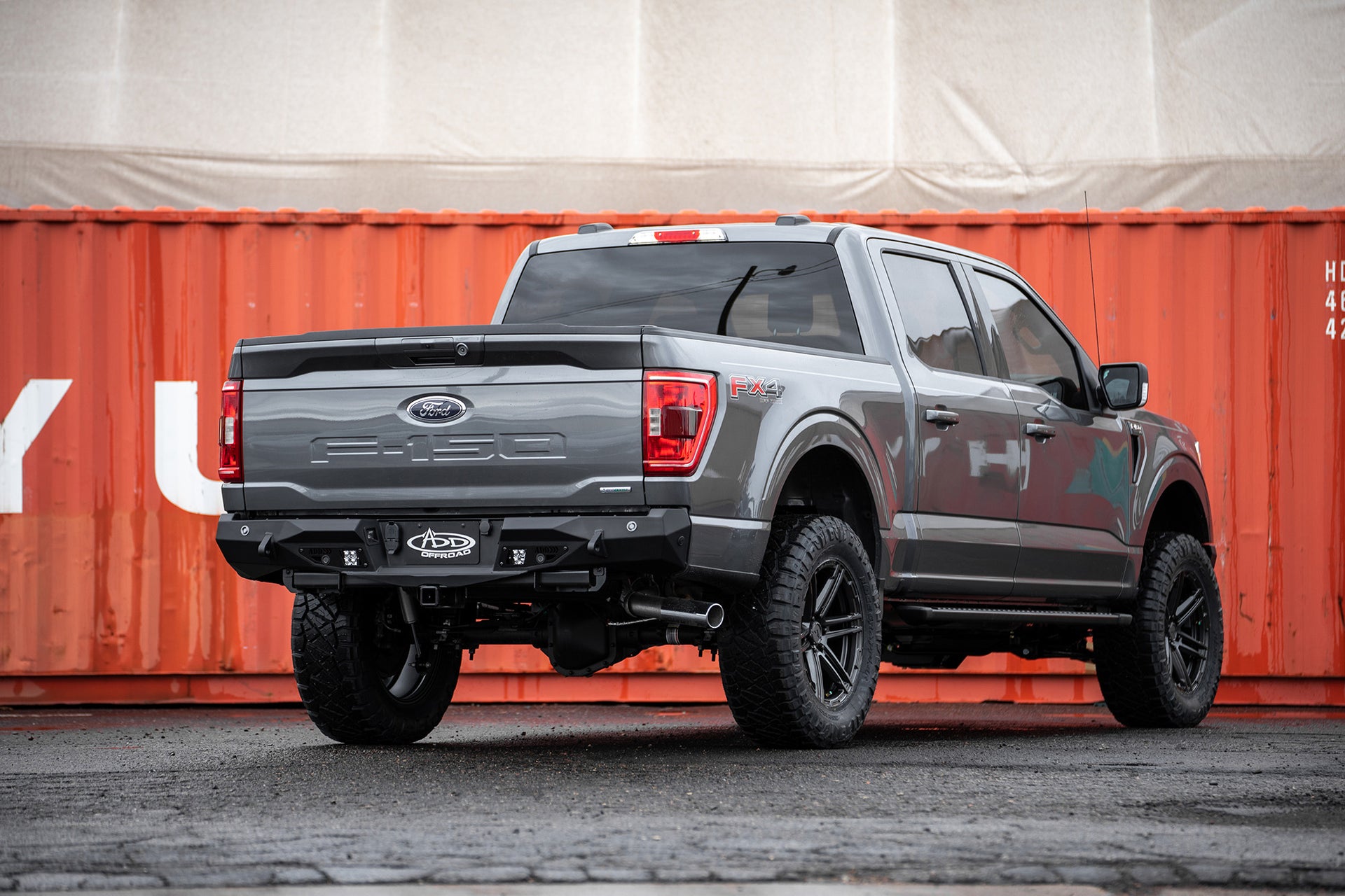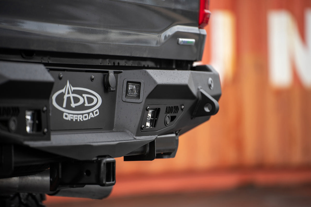 Our F-150 Stealth Fighter Rear Bumper brings an aggressive styling to the rear of your truck for an elevated look on and off the road. The bumper perfectly follows the contours of your rig’s factory lines for a low-profile fitment while its angled design offers a sleek appearance. For a complete off-road build, you can pair our rear bumper with any of ADD Offroad’s F-150 Front Bumpers.