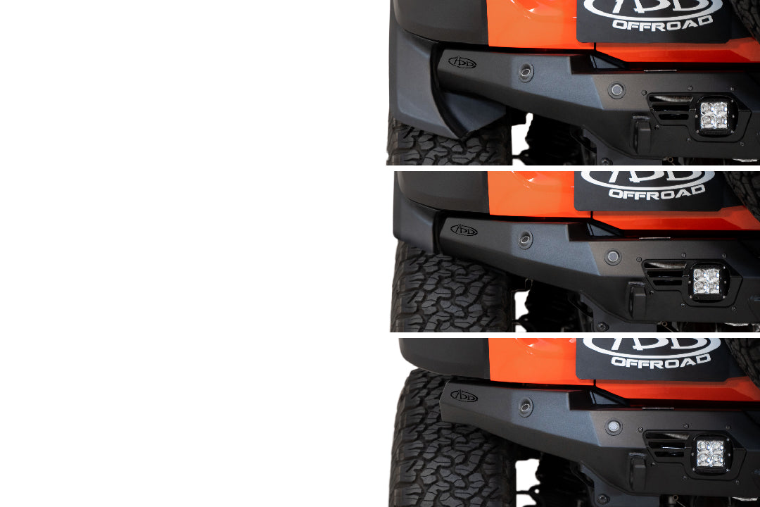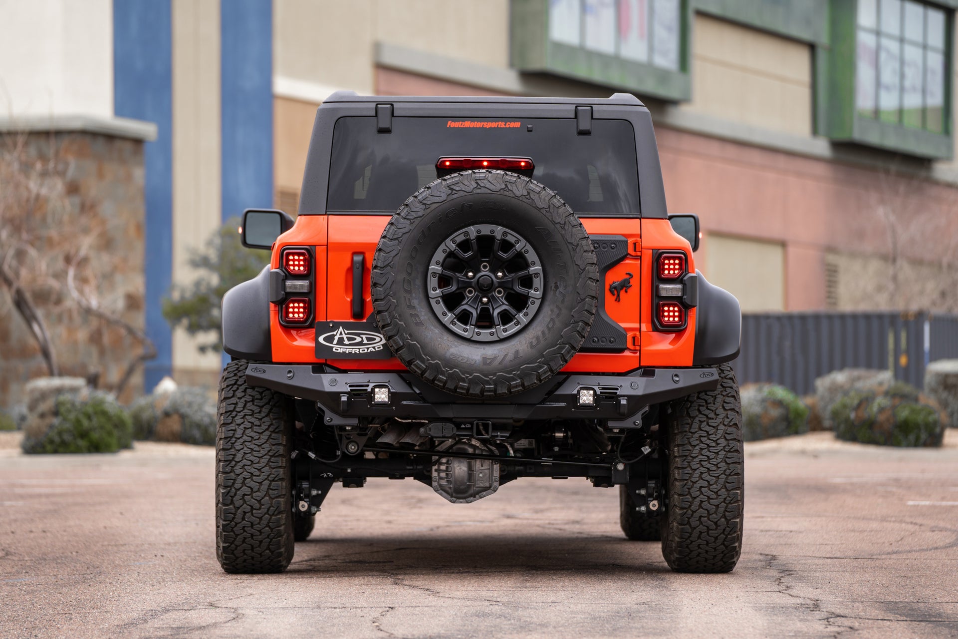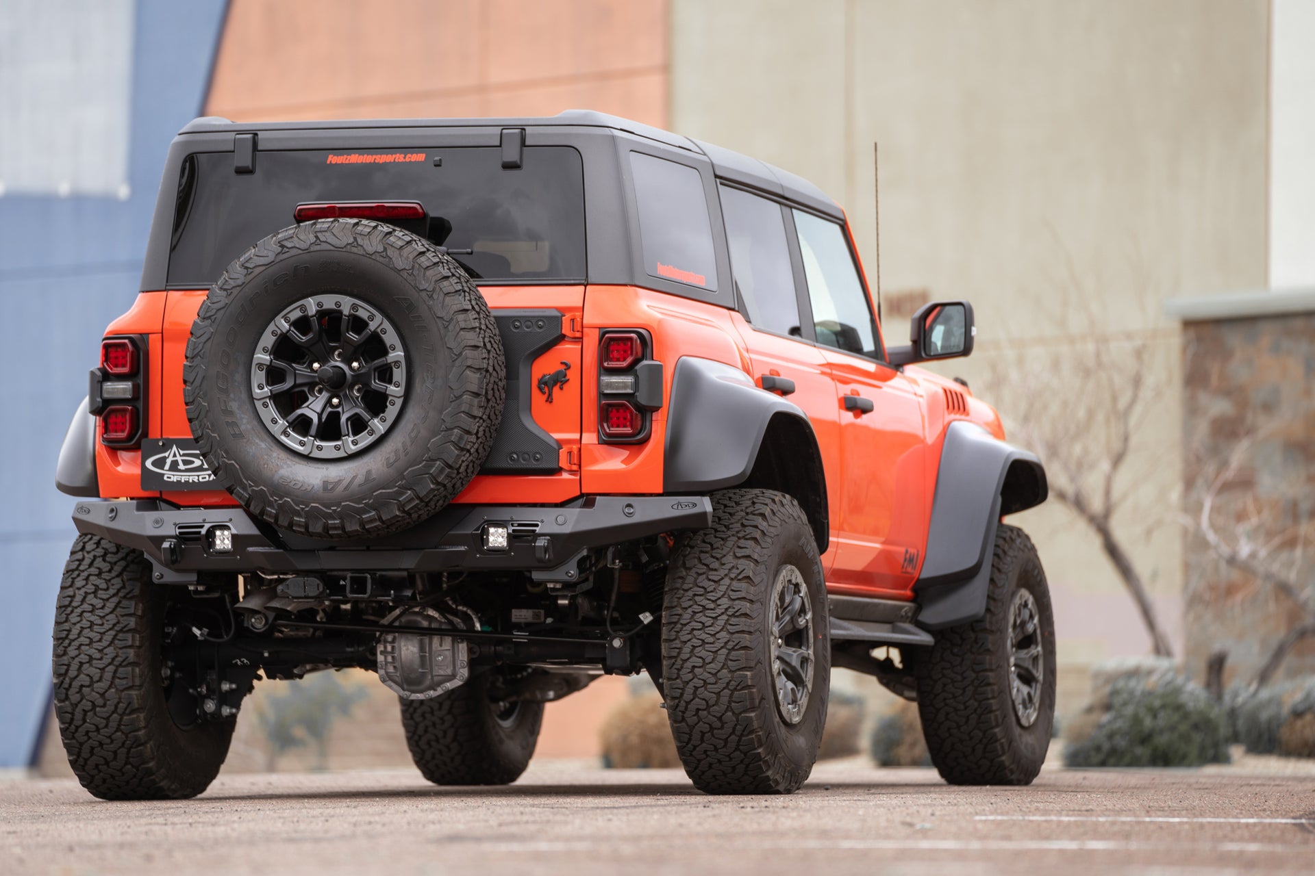 ADD Offroad's Bomber Rear Bumper's slim-fitting design offers a unique, low-profile look that adds a style to your off-road build. Crafted from plate steel and featuring a hammer black powder coat finish, this bumper is strong and durable enough to take on the toughest trails. The lightweight aluminum alloy panels are finished in a stunning satin black powder coat for an eye-catching aesthetic. The Bomber also features two heavily reinforced clevis mounts for soft shackles, bringing functional recovery options straight to your Bronco Raptor. There are 2 universal mounting points for cube lights towards both ends of the bumper that can provide supplemental lighting at the rear of the truck.