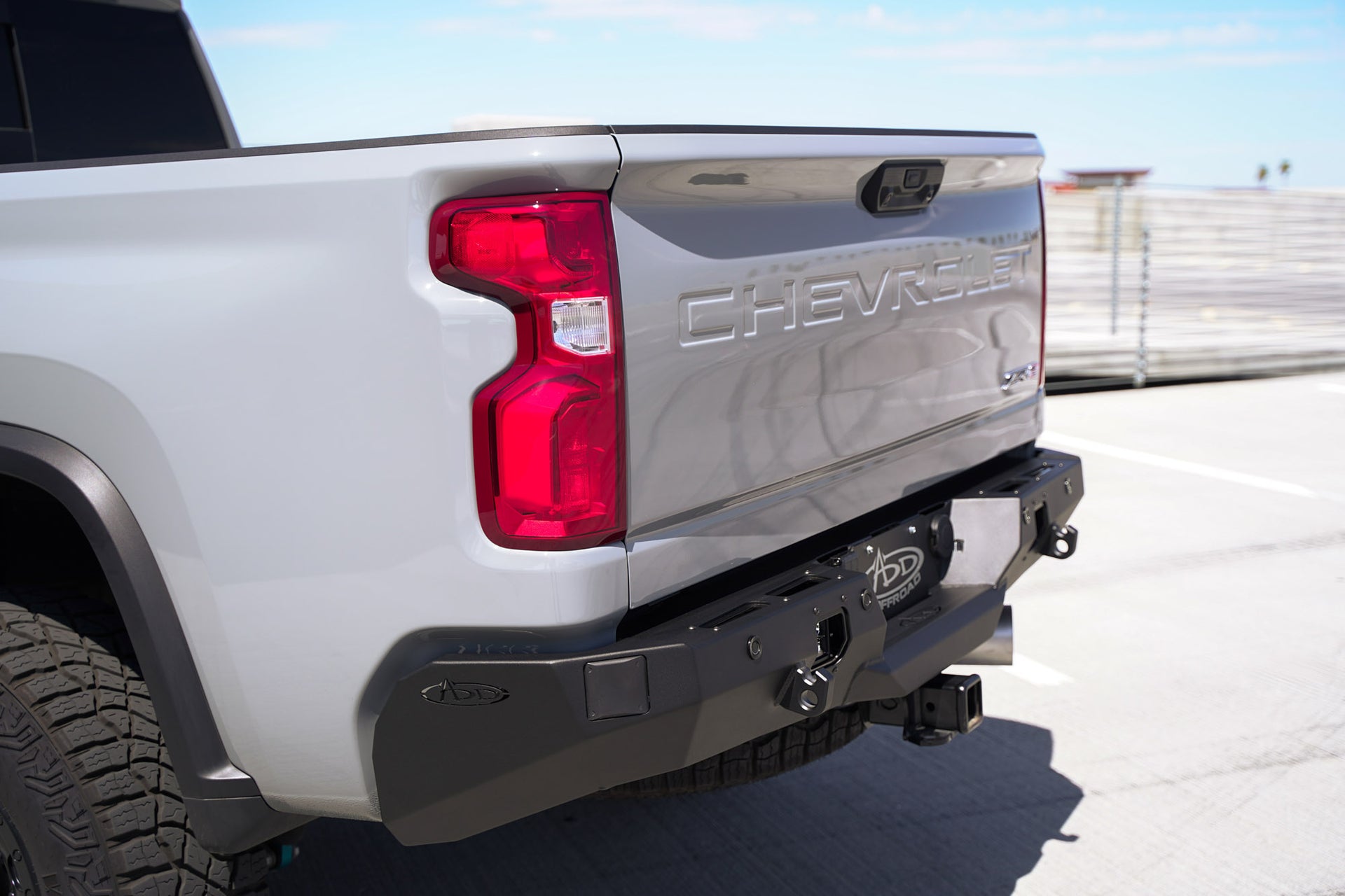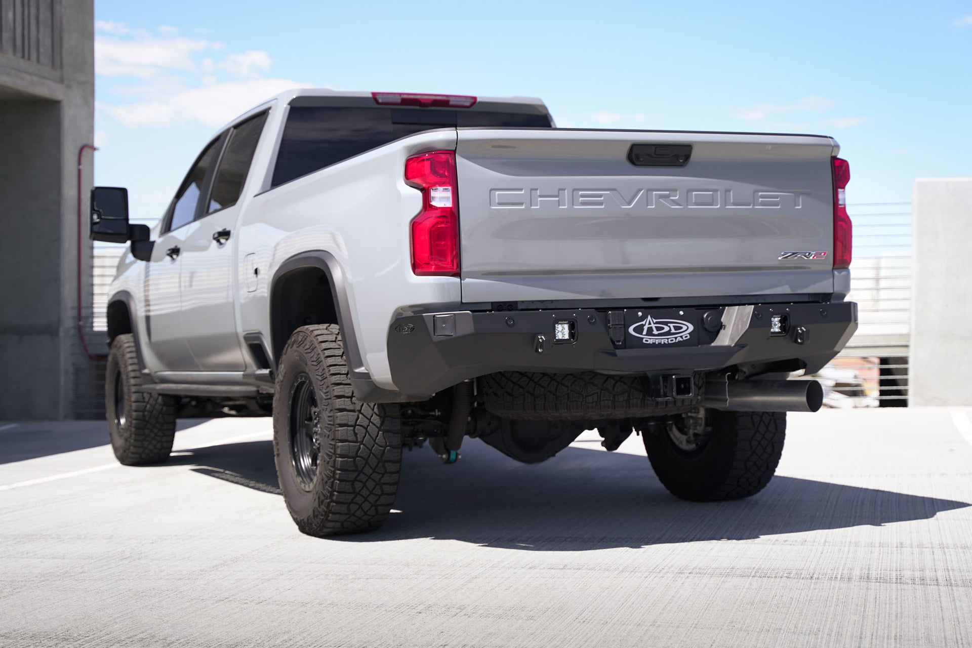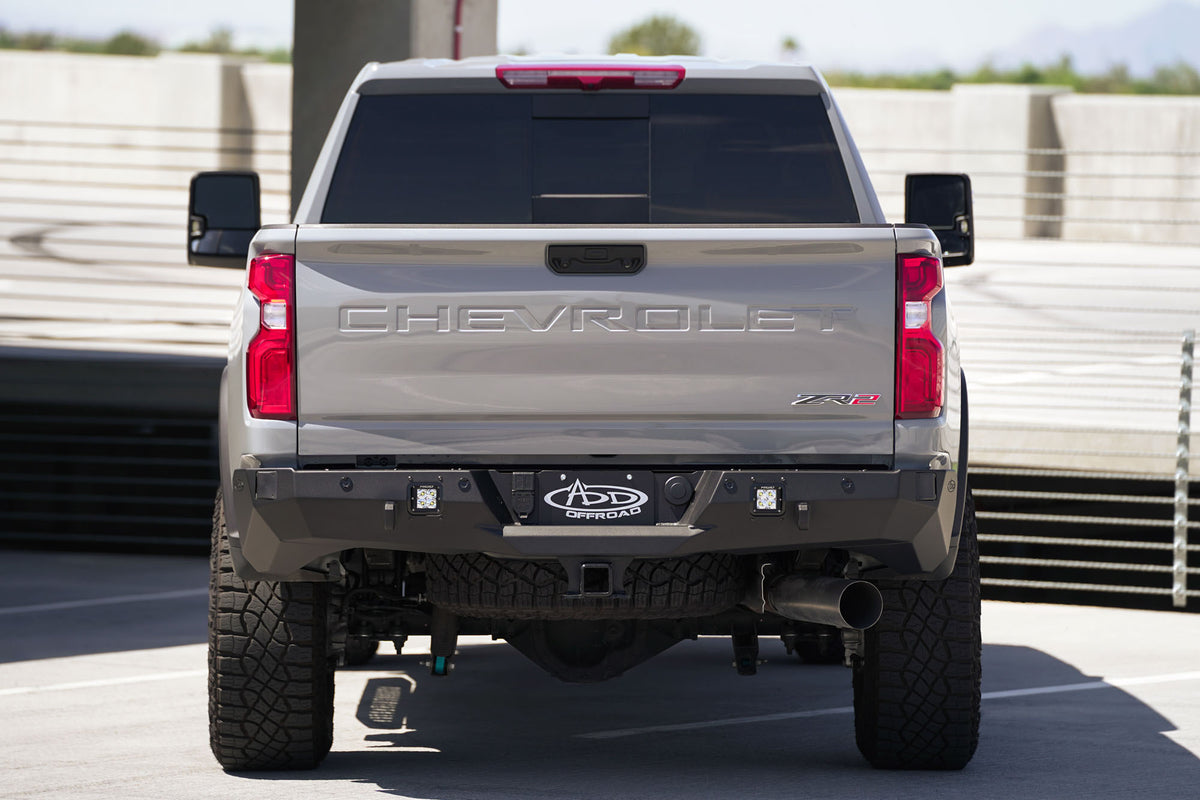Our 2024 Chevy/GMC 2500/3500 Rear Bumper is designed to prevent damage from rocks, shrubs, debris, and other off-road obstacles. The integrated pair of cube light mounts allow for improved lighting in dark or dusty conditions. A pair of 1-inch D-ring mounts provide vehicle recovery capabilities. The bumper's seamless fitment and sturdy design offers an aggressive styling that compliments your Chevy’s exterior.