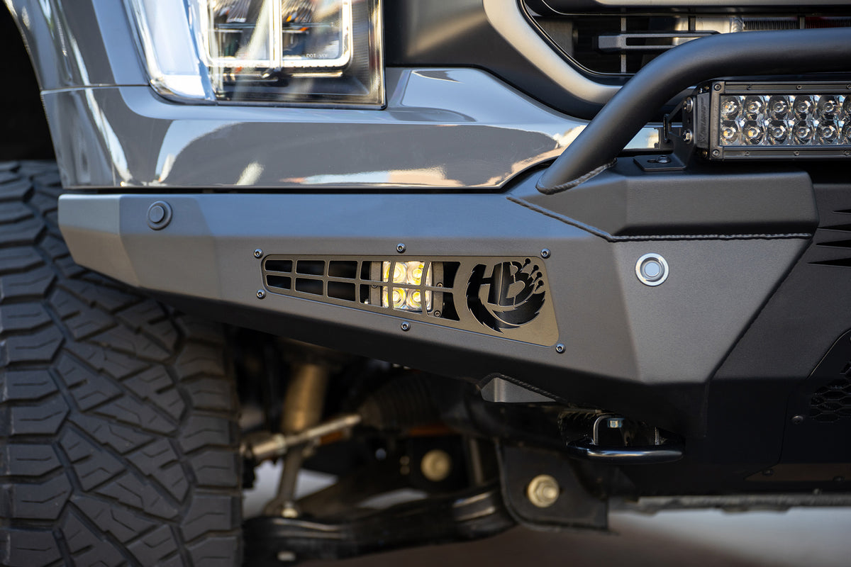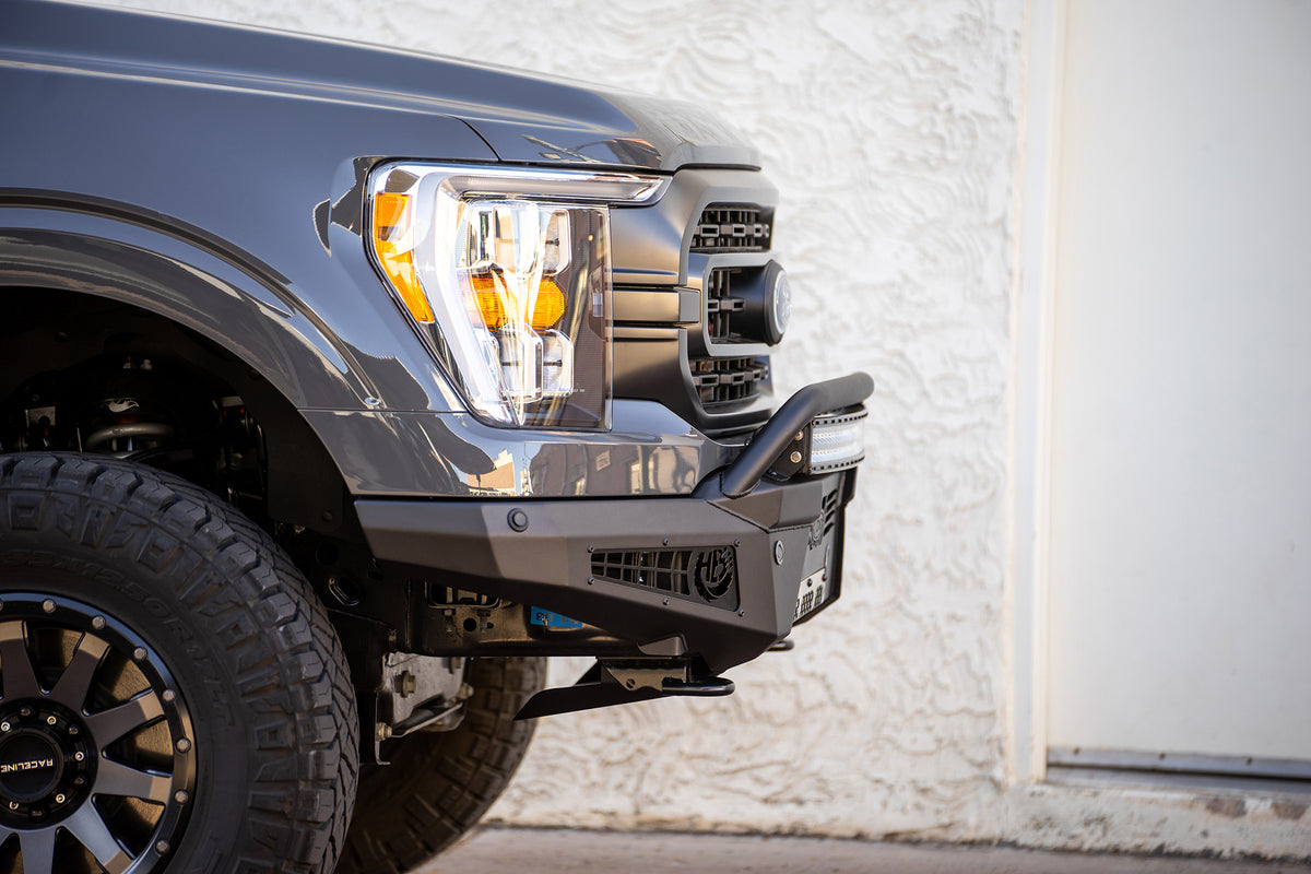 The HoneyBadger comes in hammer black powder coat with satin black panels. OEM amenities, such as parking sensors and tow hooks, are retained. Even though it is an aftermarket front bumper, the HoneyBadger follows the bodylines perfectly, making the front of your Ford F-150 look unique without sacrificing quality. As always this product is fully bolt-on and made in America.