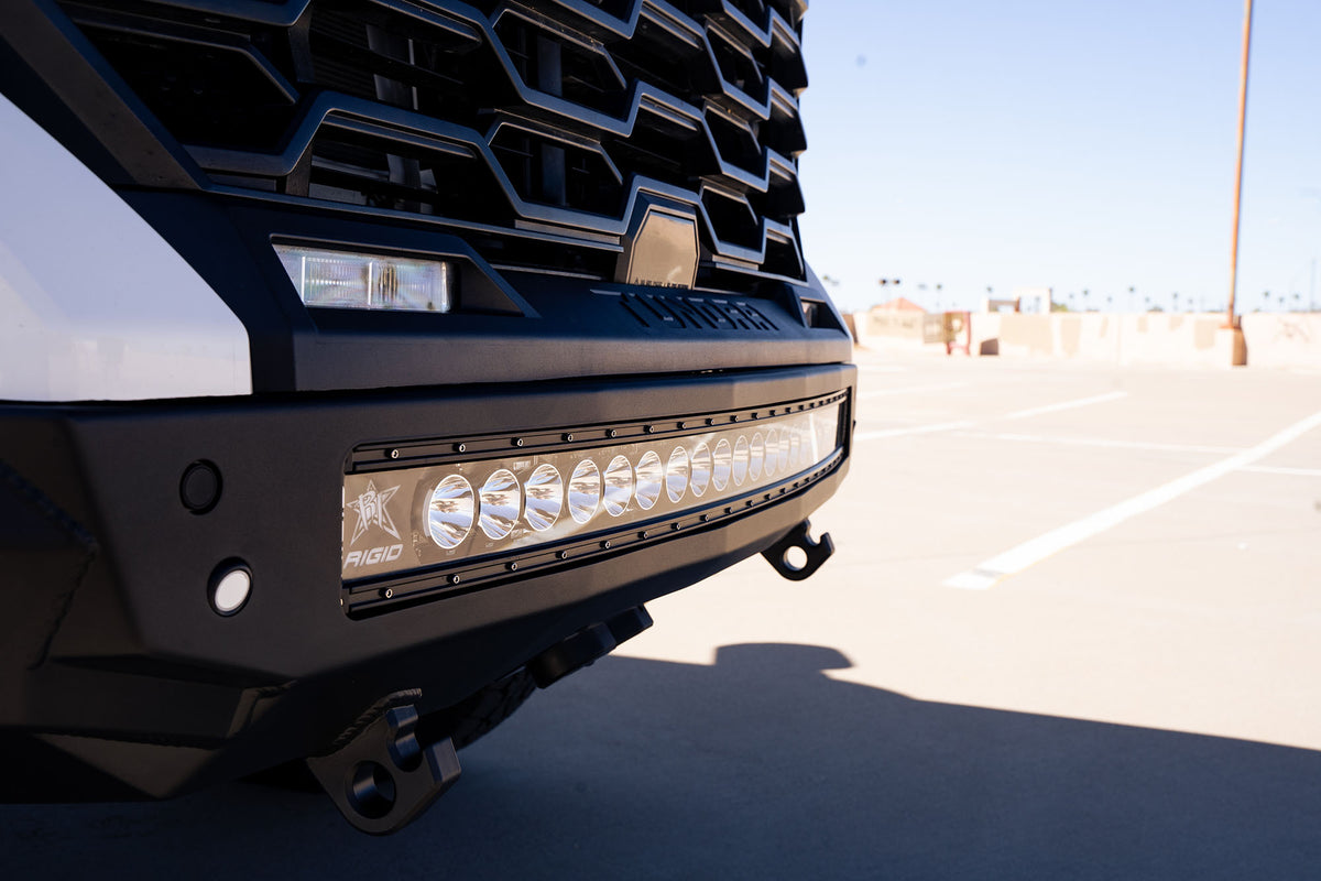 A radius plate steel design ensures the Stealth Fighter can sit as close to flush as possible to the truck for a clean look while allowing the use of a curved light bar.