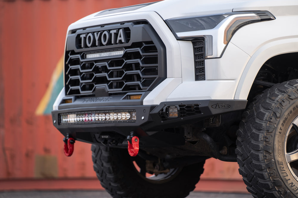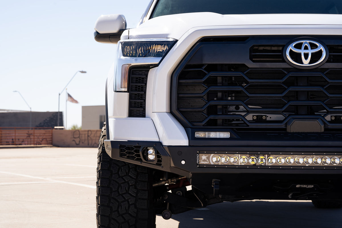 OEM styling cues are maintained by keeping both the fog lights and Tundra badging along the bottom of the grille.