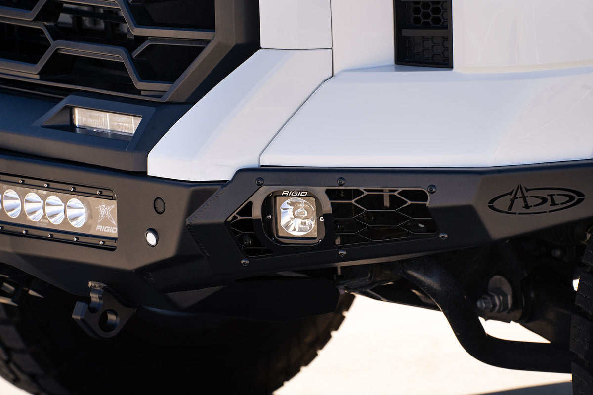 For those of us who need extra lighting, don’t worry – the patented universal light mount system allows for a 40-inch radius LED bar or up to 10 cube lights to be securely mounted in the center of the bumper. Even more lighting options are available on the side panels, which allow for cube lights to be mounted. Included with the Stealth Fighter is a concealed winch mount. And should you need more utility from your bumper, the reinforced clevis mounts accept soft shackles – for additional recovery options. Front parking sensor cutouts ensure you retain full functionality of the feature. And as always, this is fully bolt-on and Made in the USA.