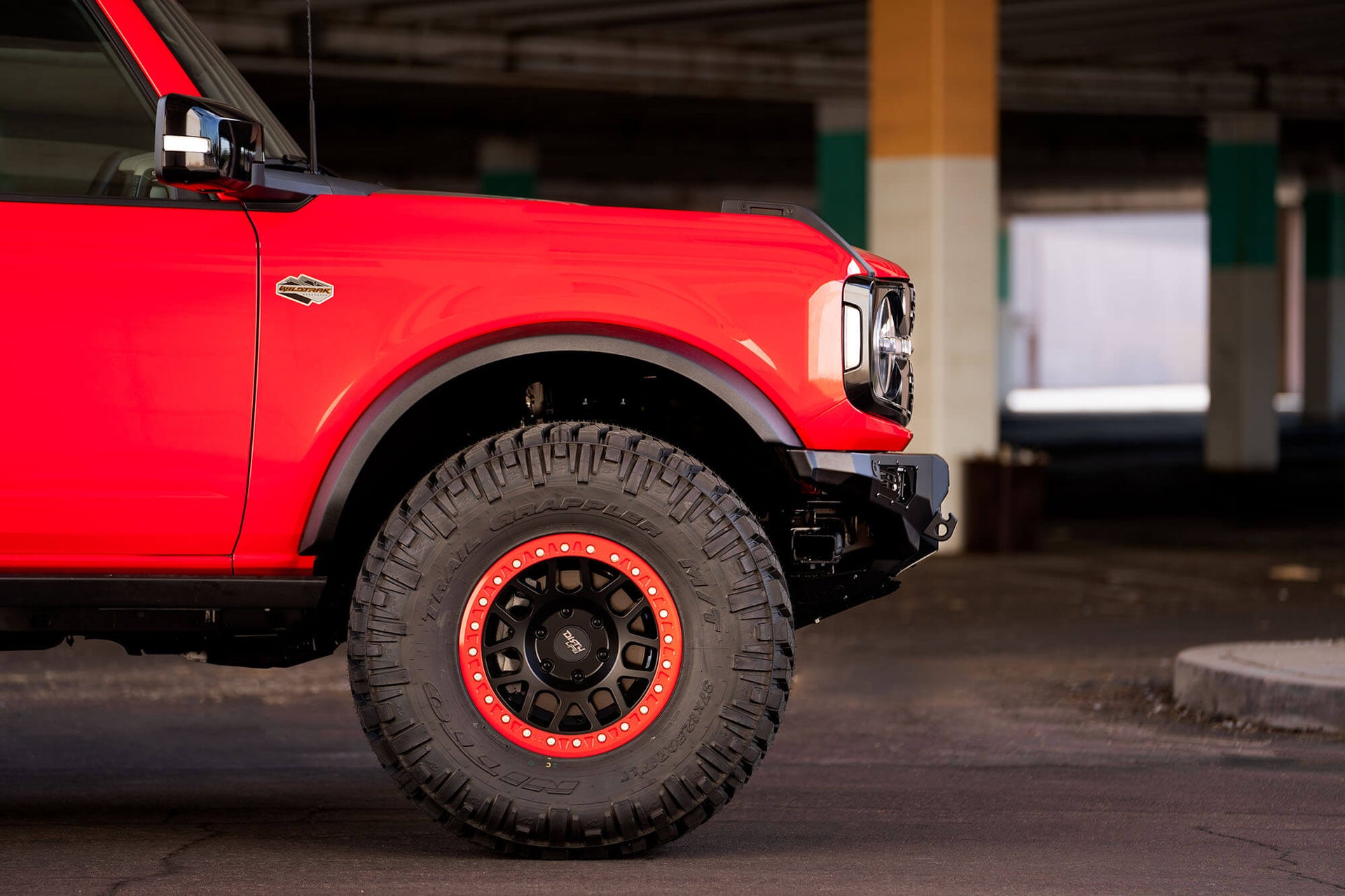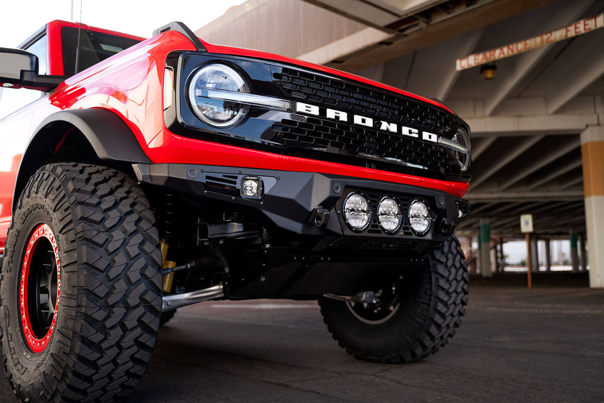 A modern plate steel design ensures the Bomber Front Bumper can sit as close to flush as possible to the Bronco for a clean look.