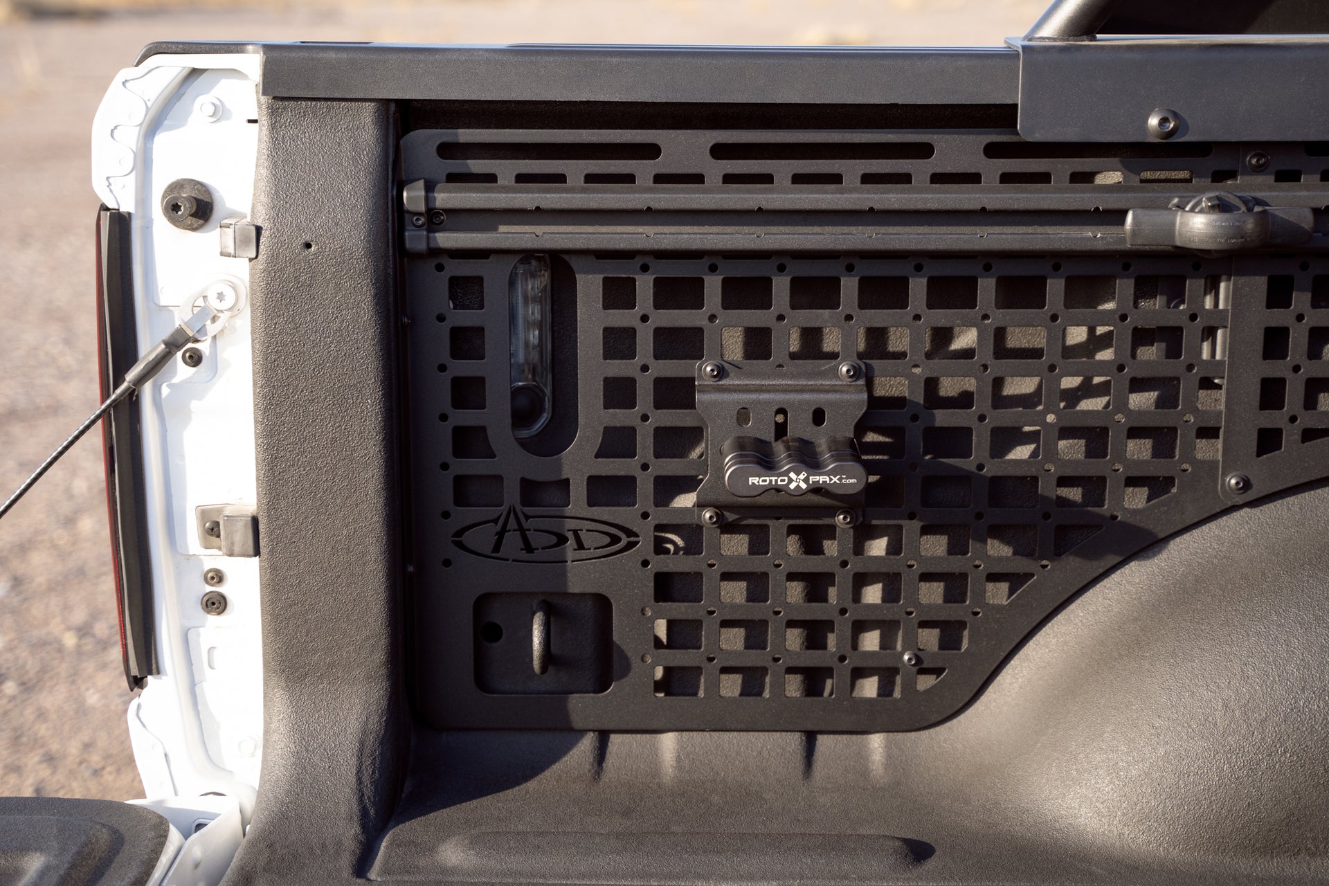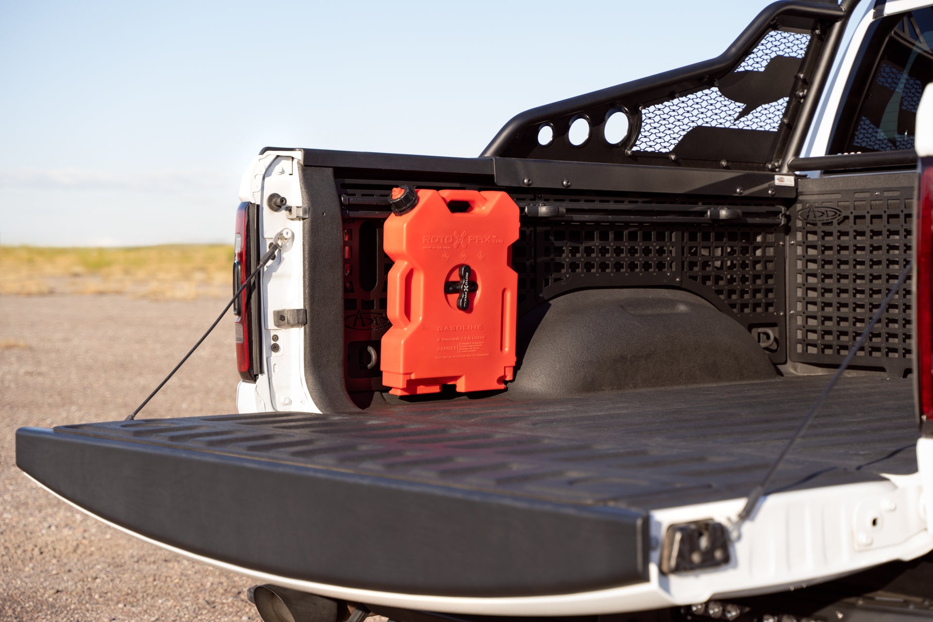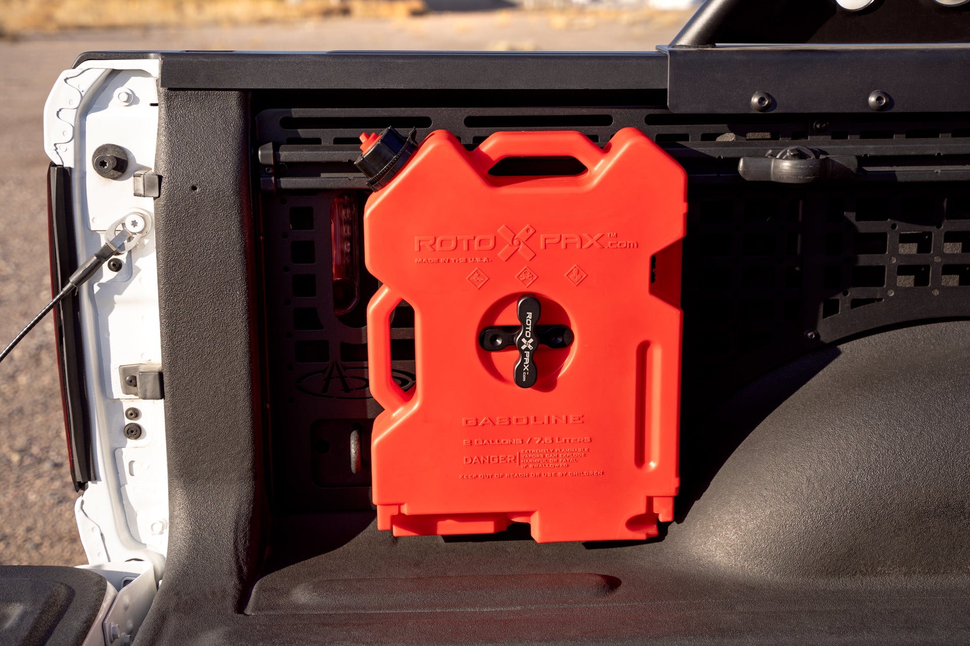 These Universal Molle Panel RotopaX Mounts from Rago Fabrication enable you to mount fluid tanks of all sizes to ADD Offroad molle panels. They are also confirmed to fit Rago Fabrication and DV8 Offroad molle panels. These mounting plates were designed for use with RotopaX Tank Mount/T-Handles (Sold Separately). The plate can handle any size RotopaX tank where space permits. Our truck bed molle panels for the F-150, Raptor, GMC/Chevy 1500 are the perfect place for this tank mount. Their universal design also provides options for other applications such as trailers, toy haulers, and more.