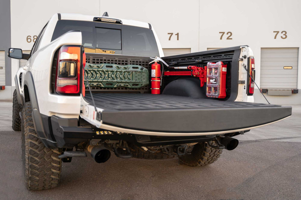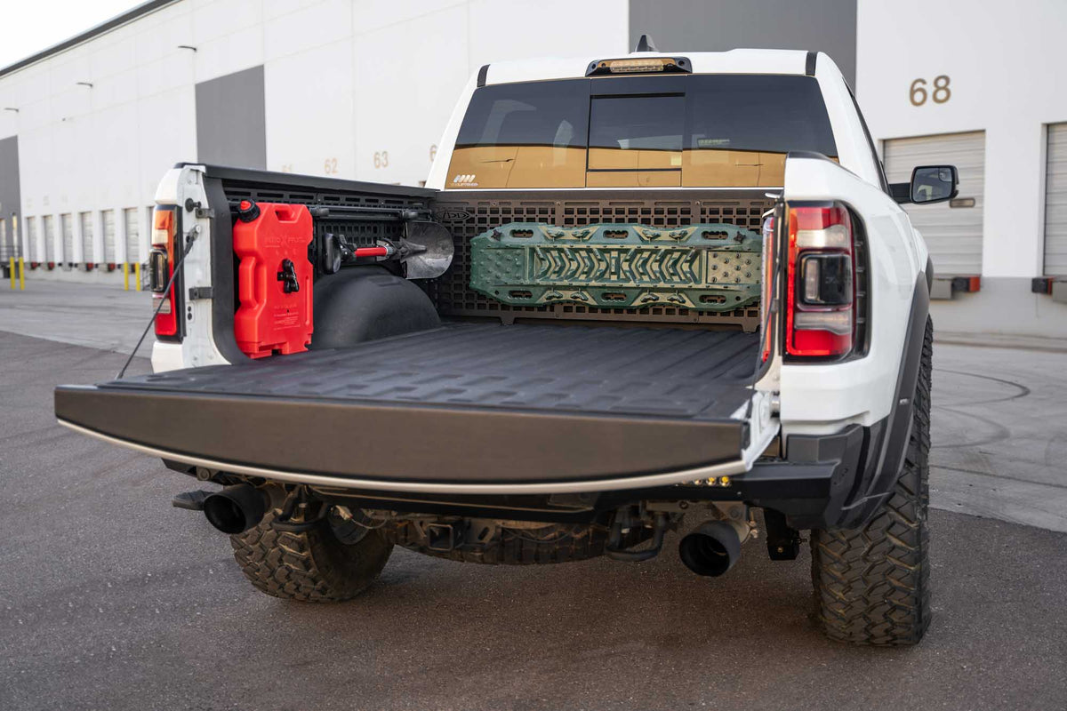 Our 2019+ Ram 1500, TRX, & RHO Bed Side Molle Panels optimize the cargo storage capabilities of your truck bed. Engineered for off-road durability and keeping your gear secure, these storage panels are compatible with various attachment systems. You can secure your gear to these panels with molle mounts, straps, bolts, or tie-down straps. You can run several configurations for the driver side, passenger side, or both sides to maximize your vertical storage - and leave the bed floor clear for larger cargo. Our panels are unrivaled in their fitment and closely follow the contours of the Ram’s truck bed.