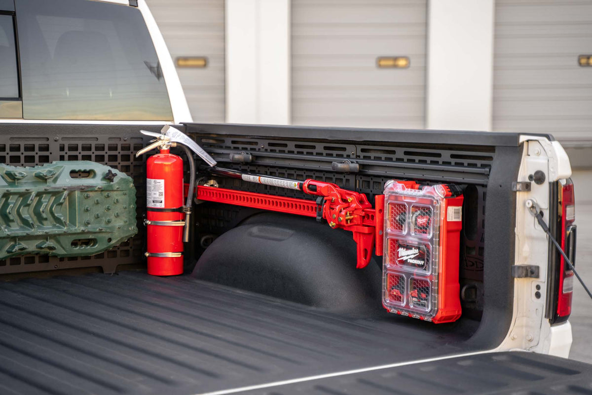 As photographed, our full storage solution includes our Bed Cab Molle Panels. The full system maximizes your storage, organization, and strength.