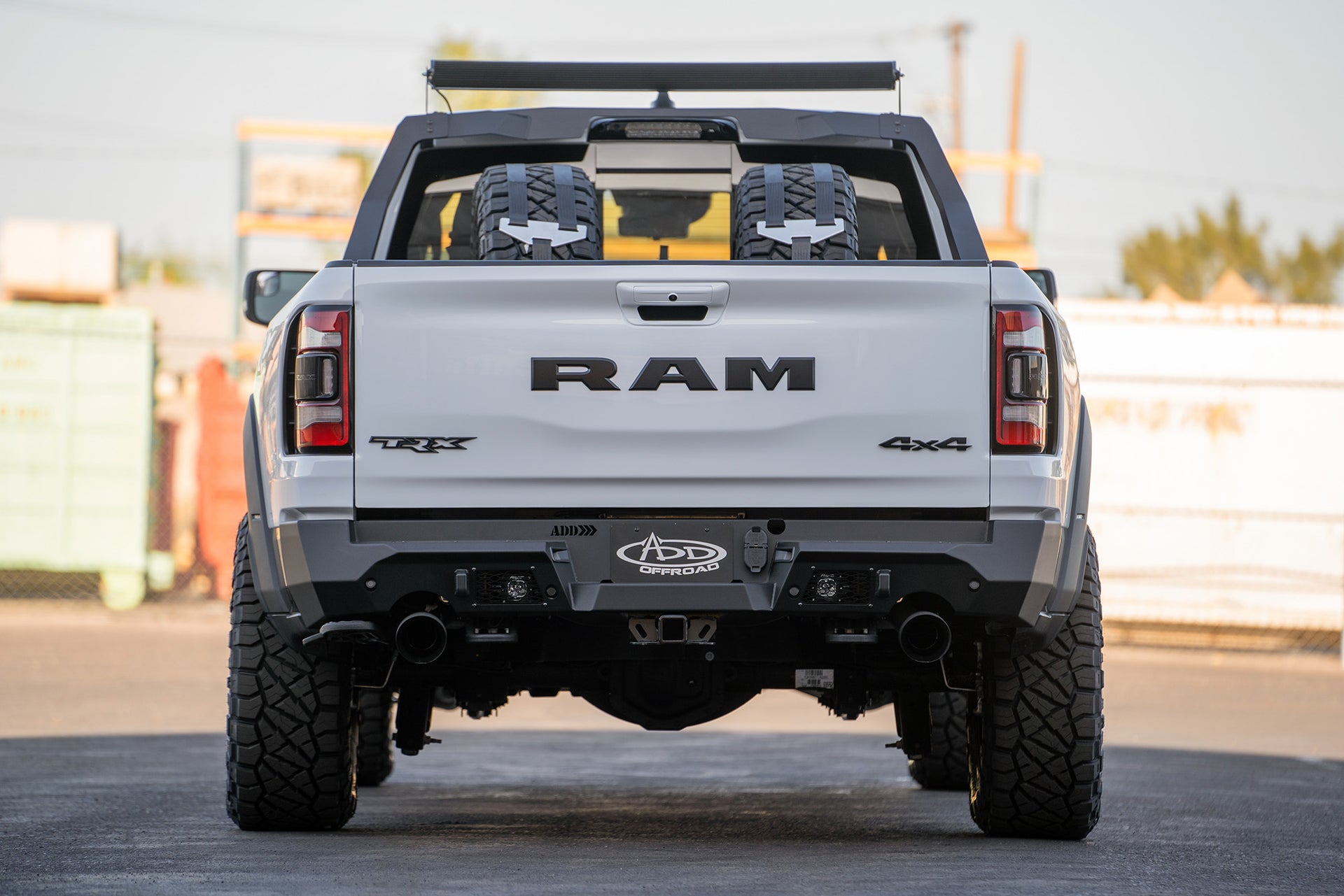 The Stealth Fighter Rear Bumper has a modern plate steel design that provides an aggressive look without being bulky. Clean lines and angles compliment the factory bodylines to give it a low-profile feel. Two rear facing cube light mounts are featured behind the panels. Parking sensor cutouts and trailer plug accommodations ensure that every OEM feature is retained.