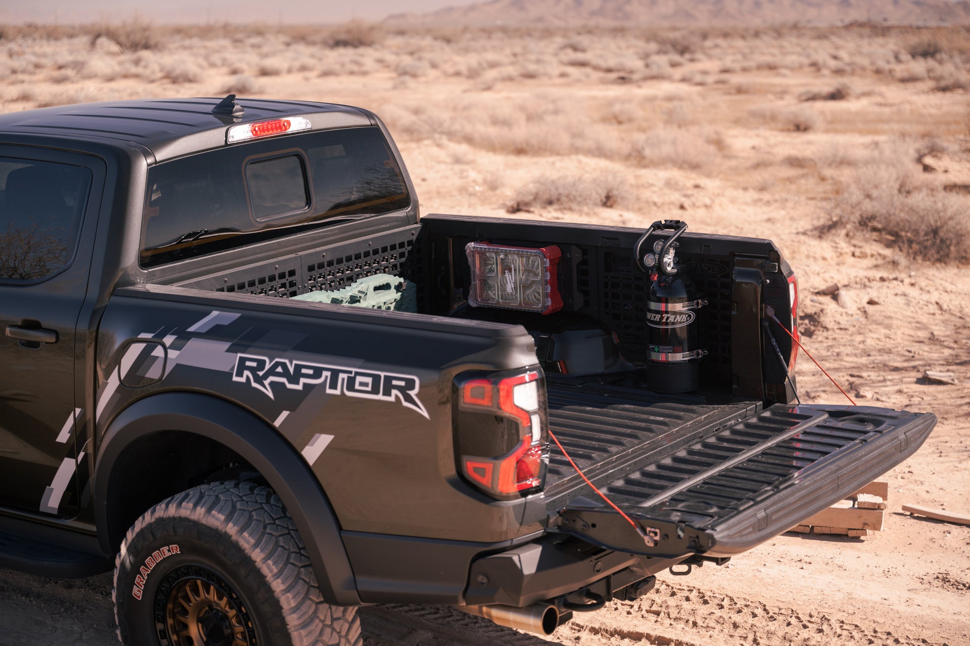 The Ranger Raptor Molle Panels closely follow the contours of your bed cab for a seamless fitment. The install process is straightforward, and the panels attach to multiple mounting points for a rigid design that won’t rattle, even when on rough terrain. The panels are crafted from heavy-duty steel, and they are finished in a resilient dual-stage hammer black powder coat that enhances your Ranger Raptor’s sleek exterior. The panels retain your OEM tie down points while offering additional tie down capabilities. With our molle panels, you can stow your supplies out of the way, leaving your truck bed free for larger equipment. As always, our molle panels are proudly made in the USA.