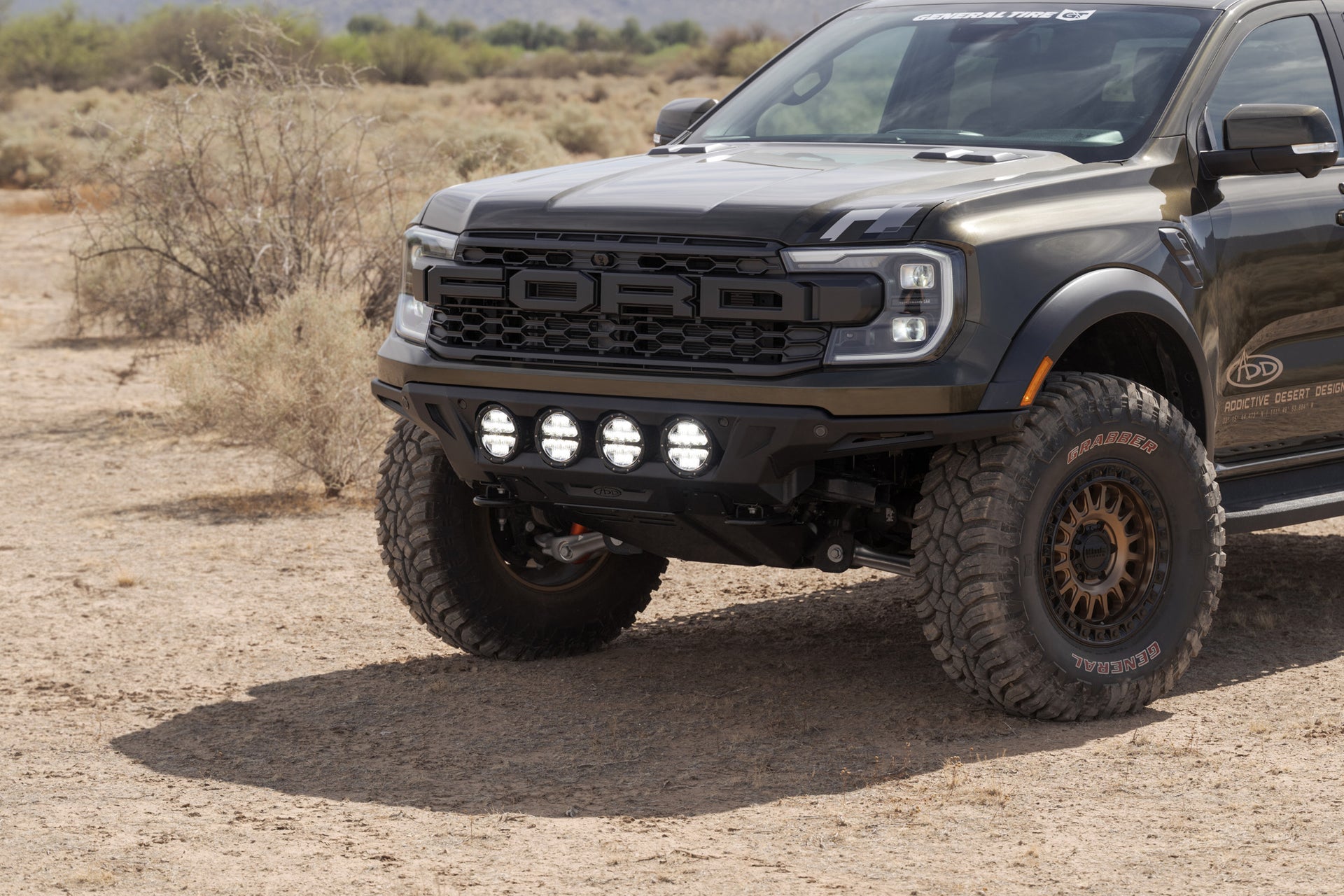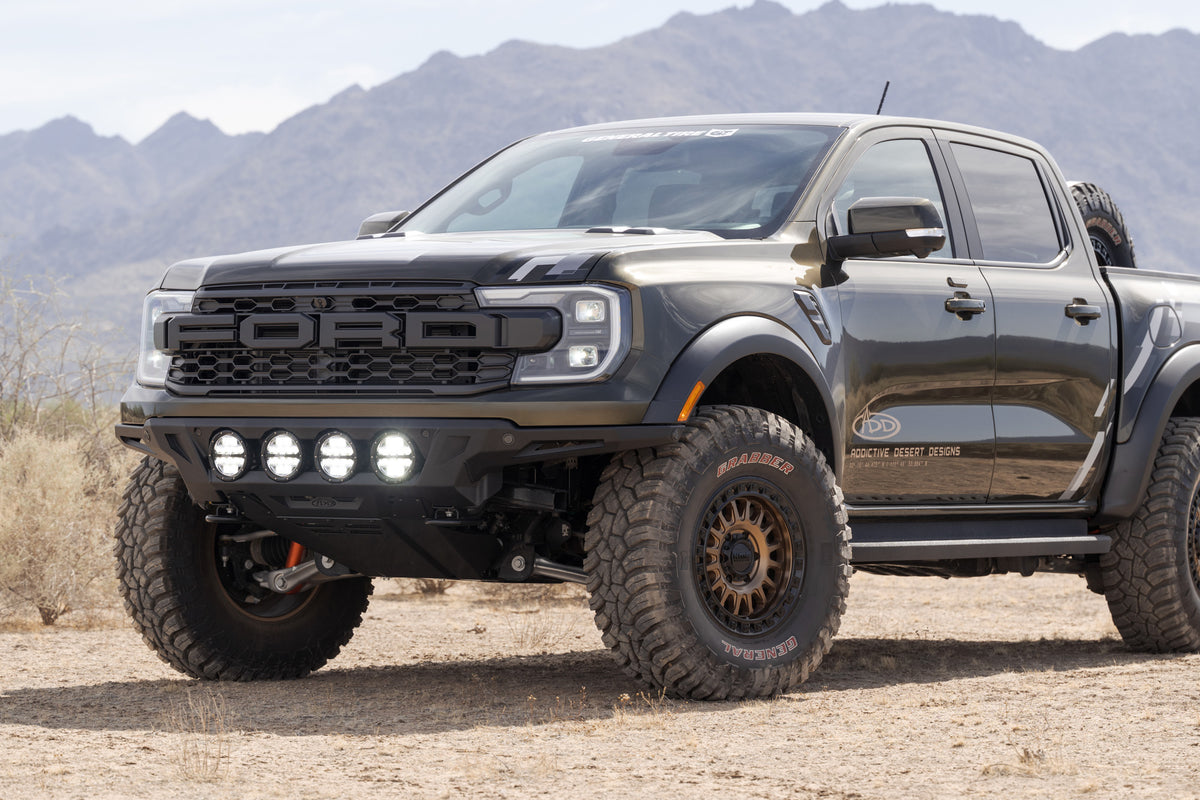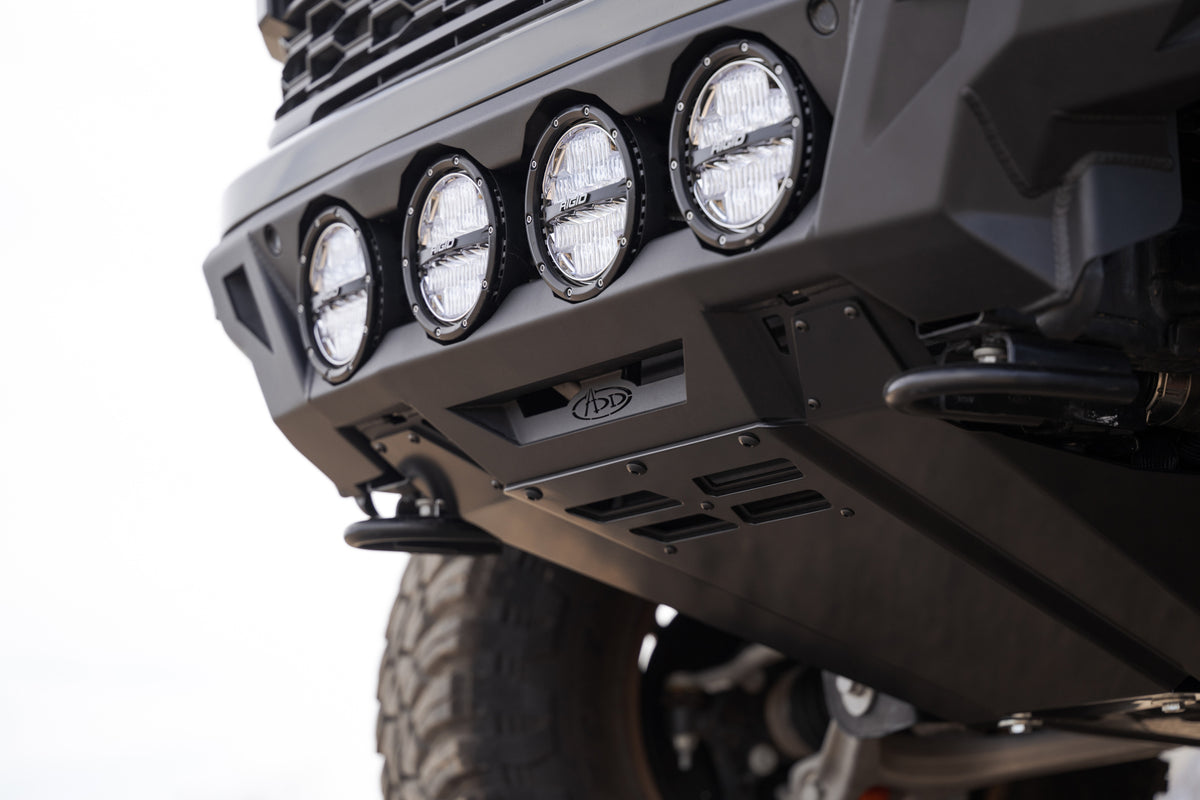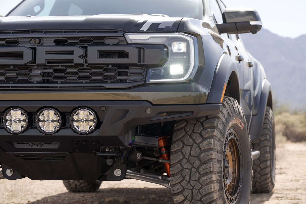 Our ADD Edge Ranger Raptor Front Bumper features an ultra high-clearance fitment and sleek center light mount for the perfect combination of high-end styling and off-road utility. The low-profile wings provide the highest clearance out of all the ADD bumper lines, so you can navigate larger obstacles when off-road. The integrated light mount can run four RIGID 6-inch 360 Series Lights or four Baja Designs LP4 Lights. The mount’s frenched-in design provides a smooth & finished look.