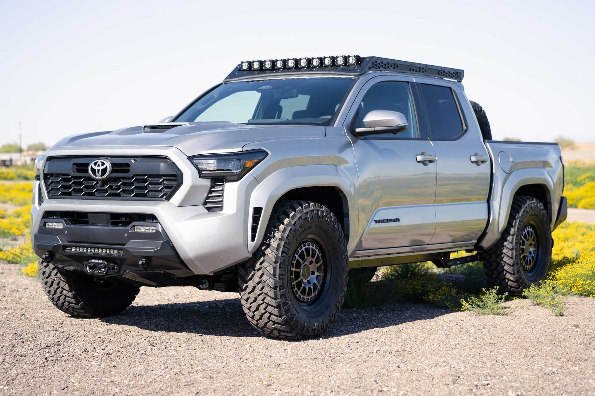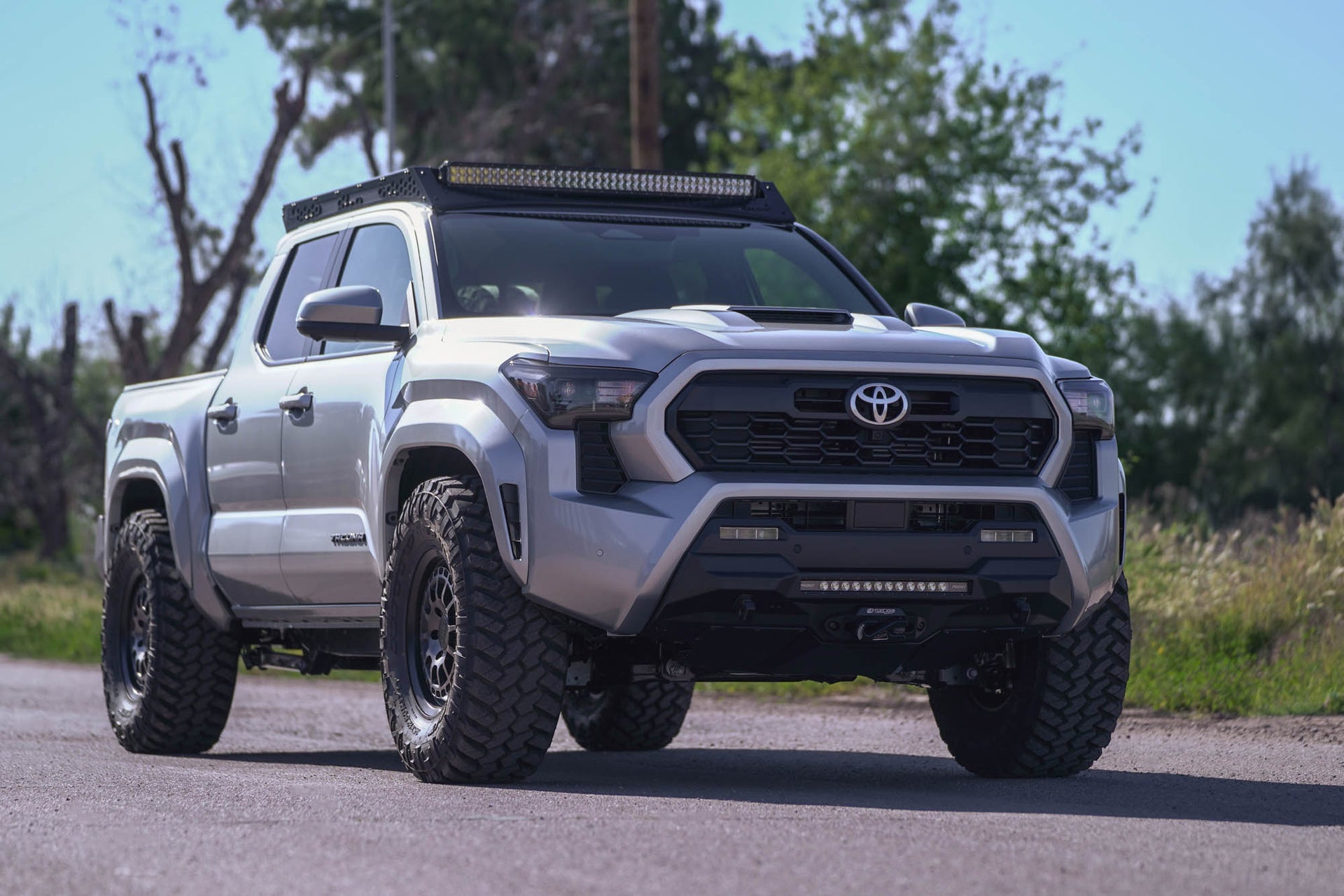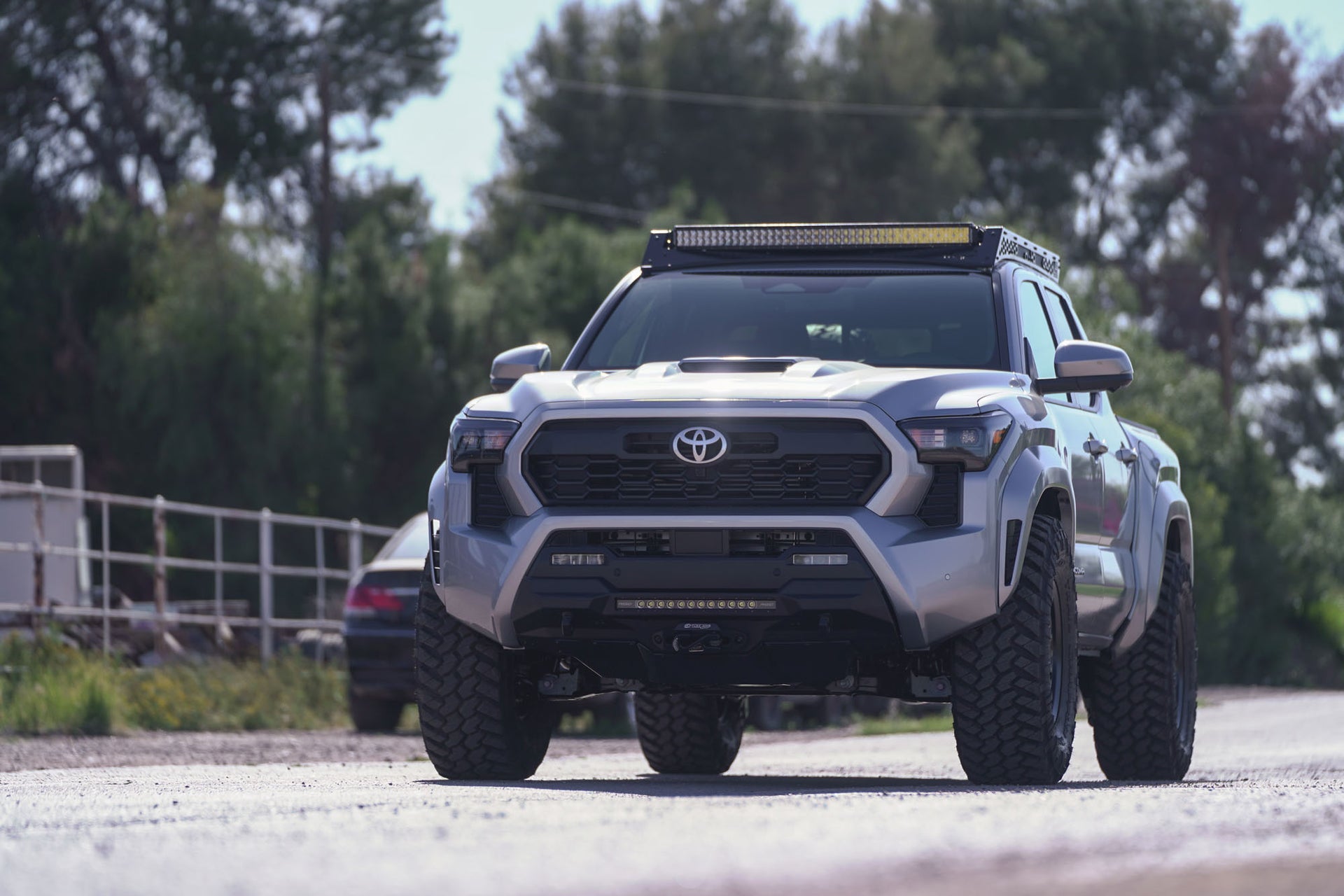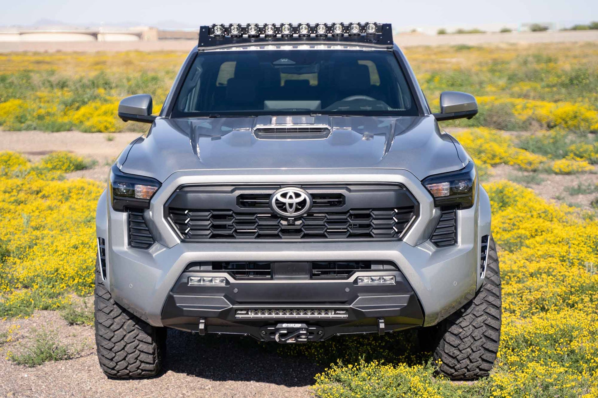 The Stealth Series 4th Gen Tacoma Center Mount Winch Front Bumper provides added durability and recovery options during off-road adventures and everyday travels. A universal mount for a single row 20-inch light bar in the center of the bumper gives you additional lighting options for navigating low-light terrain. Our bumper retains the OEM sensors, fog lights, and front camera view, while remaining compatible with adaptive cruise control.