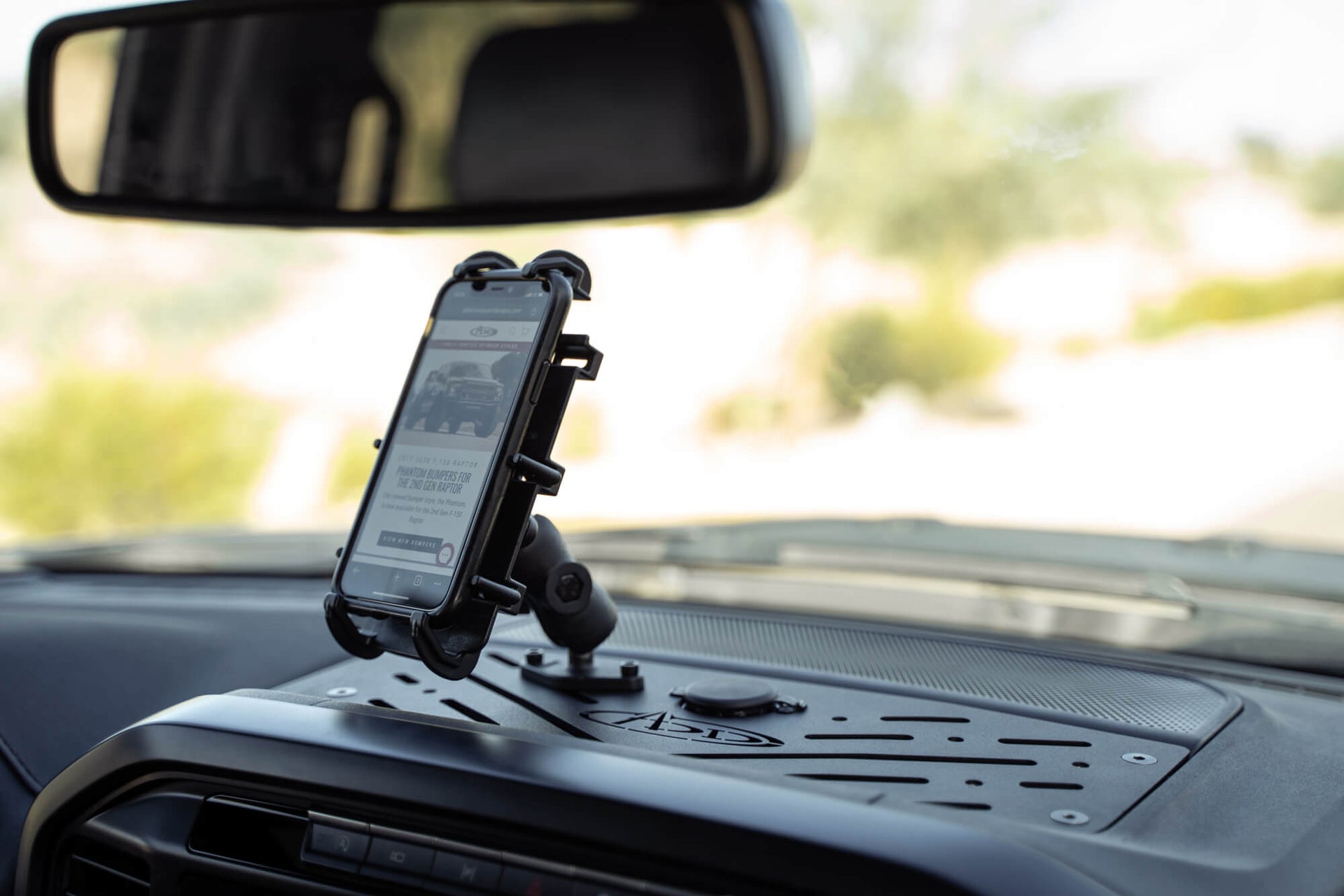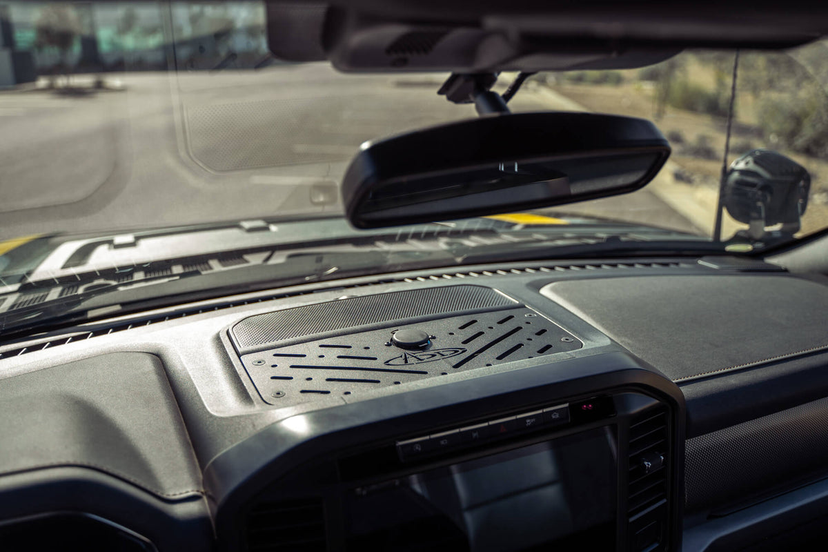 Accessibility to communication, navigation, and information while on the road or trail is vital. Keep your handheld devices within reach with our 2021+ F-150 & 3rd Gen Raptor Digital Device Dash Mount. Finished in a durable 2-stage black powder coat, the contoured plate mounts in F-150 dash cubby and complements the interior styling. It was designed for compatibility with RAM Mounts device holders as well as other brands. This solution is ideal for mounting smartphones, tablets, GPS, action cameras, and other digital devices. At the center of the plate are dual 12V USB charging ports to provide additional charging opportunities when running multiple devices. As always, this is Made in America.