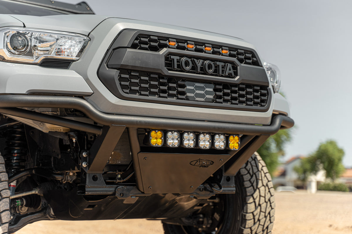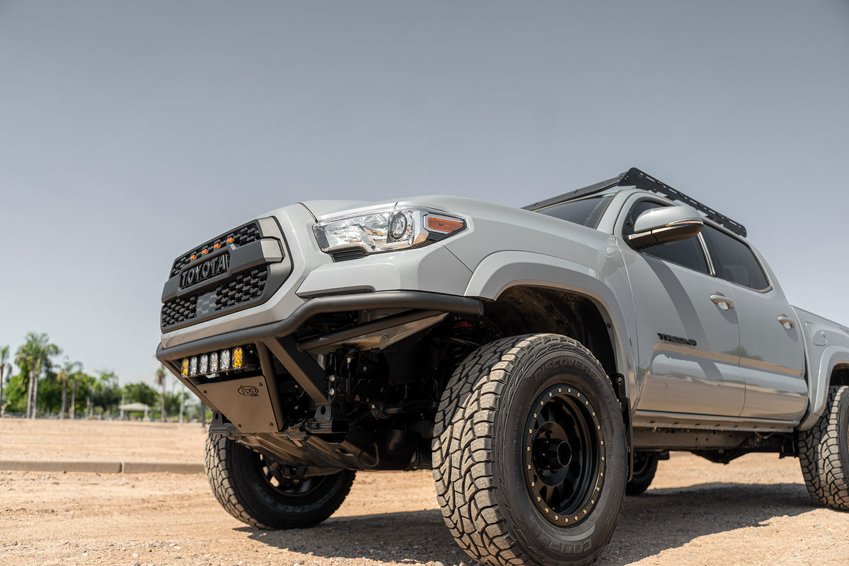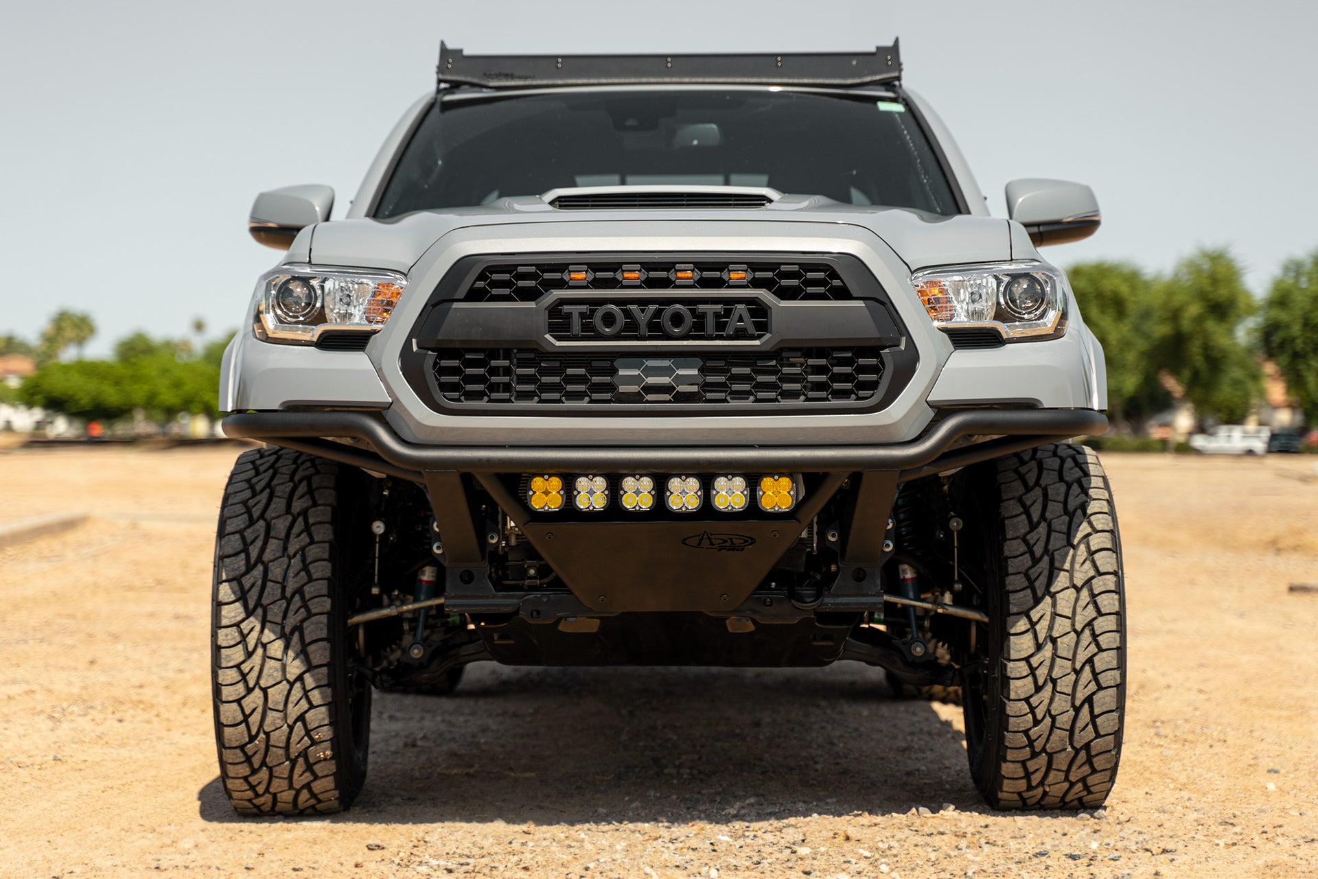 The ADD PRO Bolt-on bumper stays flush with the front your Toyota Tacoma. The PRO Bolt-on truly contours the body lines of the Tacoma without the need for a plastic valence.