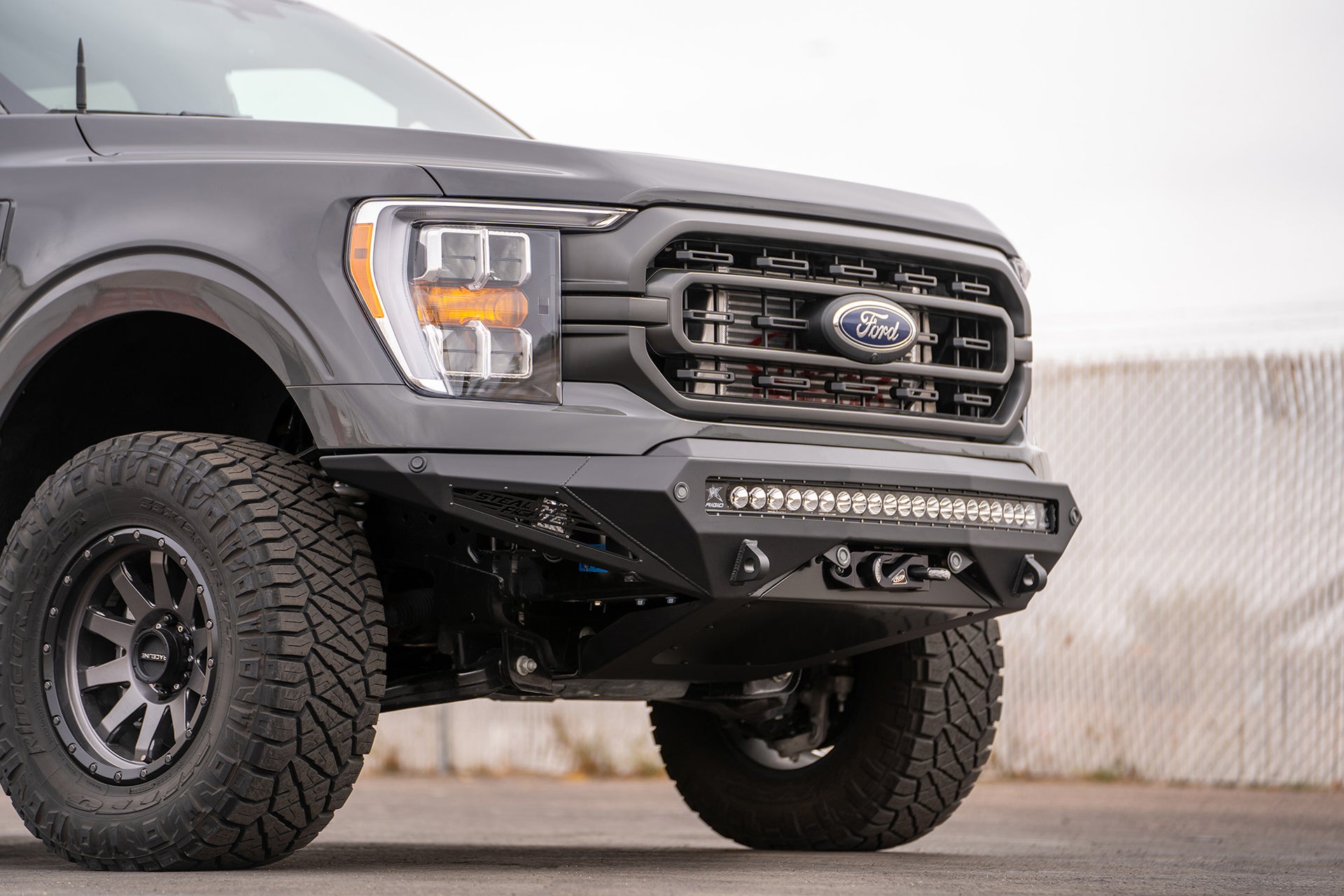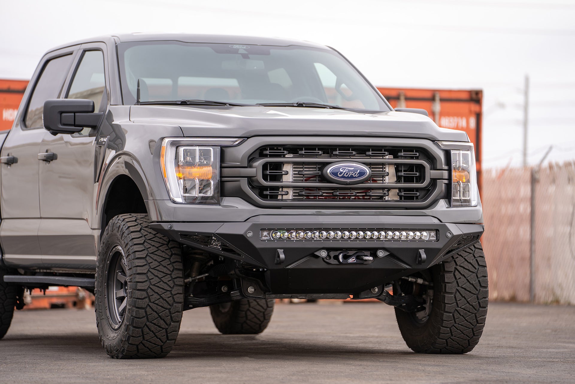 A universal light mount system in the center of the bumper that holds up to a 40" radius light bar or 10 cube lights.
