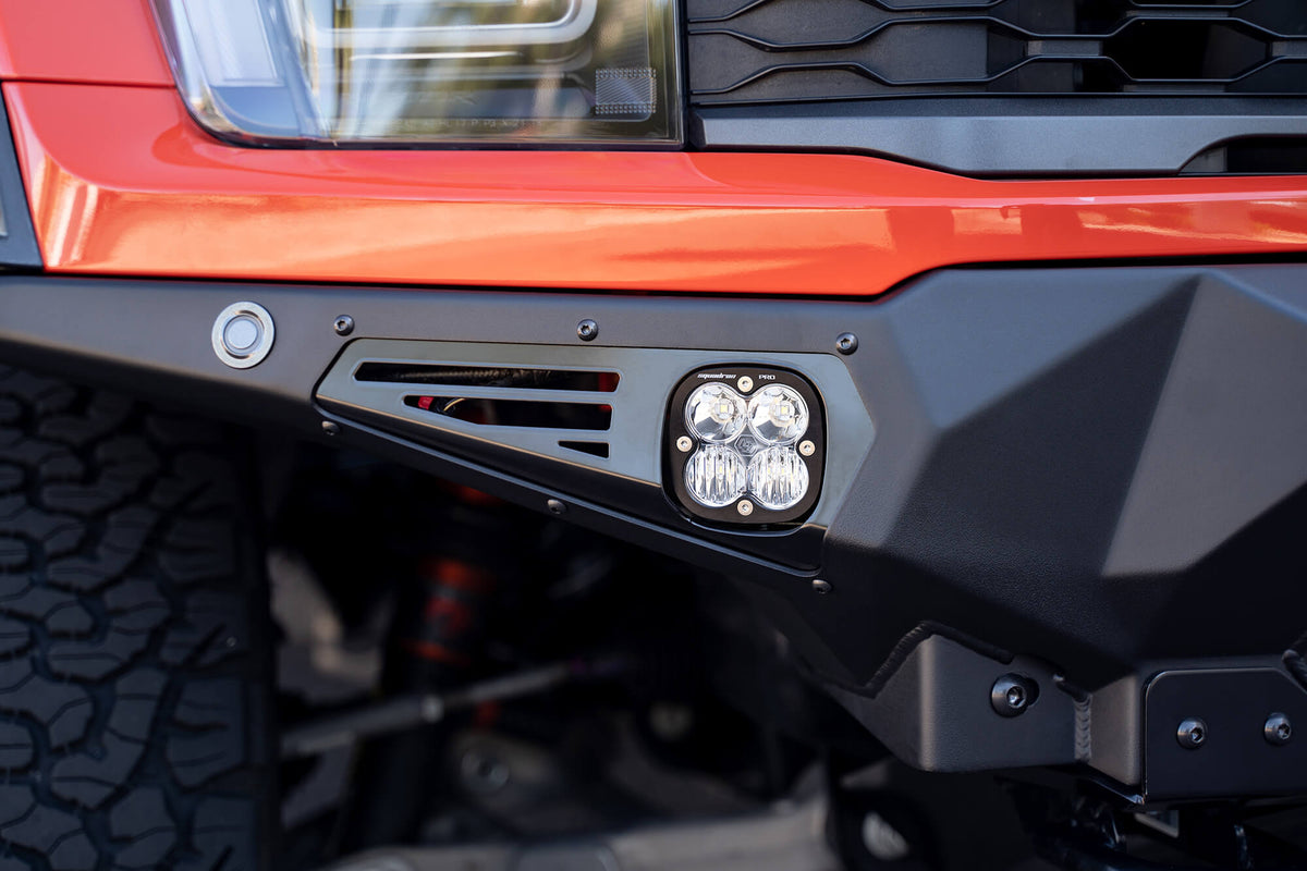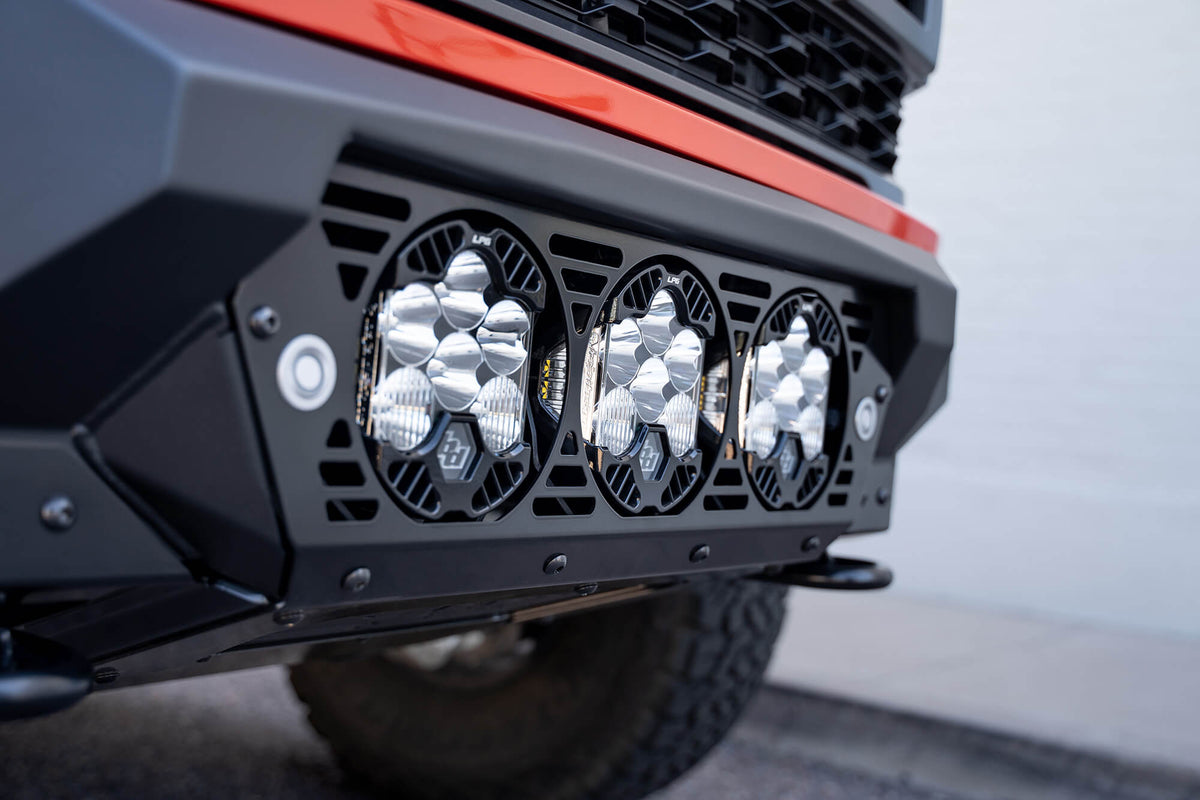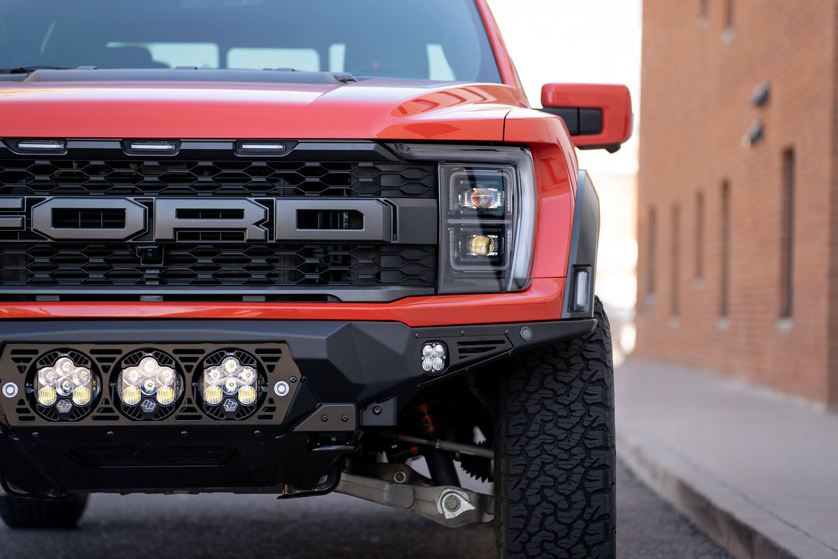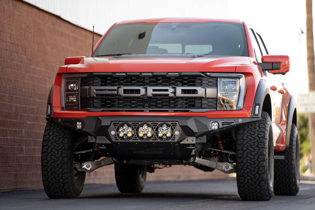 The ADD Offroad Bomber Front Bumper for the Ford Raptor & Raptor R has been the king of aftermarket Raptor bumpers for years. We’ve brought the Bomber to the 3rd-gen Raptor, keeping it true to it’s low-profile, aggressive styling. Constructed from plate steel and lightweight aluminum panels, the Bomber provides protection to your truck’s front end without compromising clearance. The 3/16-inch aluminum skid plate helps to ensure that the Bomber is lighter than the OEM bumper.