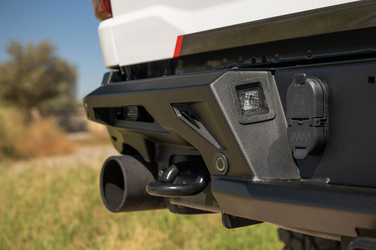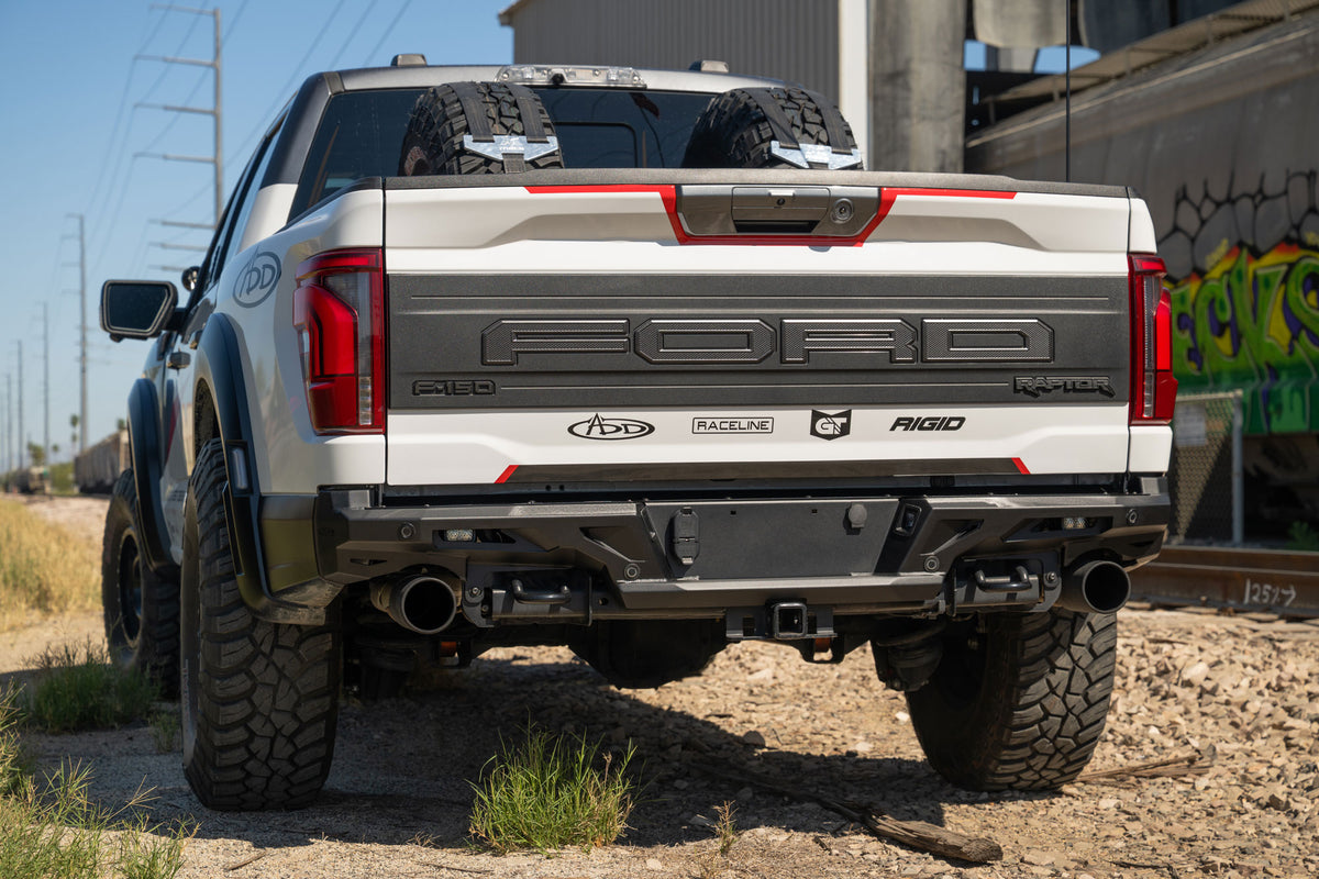 Designed to match the Raptor's aggressive stance, the ADD Edge Rear Bumper transforms your truck's tail end with razor-sharp lines and bold detailing that means business on and off the trail. Built for function as much as form, the Edge features integrated center light mounting that fits (2) Rigid Industries SRM Series or (2) Baja Designs S2 lights, putting powerful auxiliary lighting exactly where you need it. High-clearance sides and a low-profile fitment keep approach and departure angles working in your favor when the terrain gets serious.