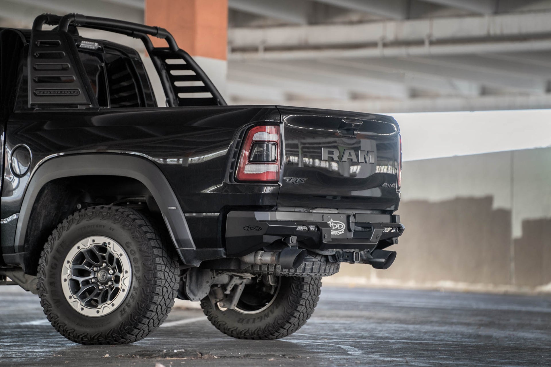 The Ram TRX Phantom Rear Bumper is the perfect way to bring added style and protection to your truck. At ADD Offroad, we believe in products that combine longevity and aesthetic appeal, so you can trust this rugged, plate steel bumper won’t let you down. The modern box design is subtle yet sophisticated, giving a streamlined look that works to emphasize the unique hammerhead style of the bumper's sides. The factory dual exhaust and tow hooks fit comfortably under the bumper, and sensor cutouts mean you retain all of your parking/backup system functions.